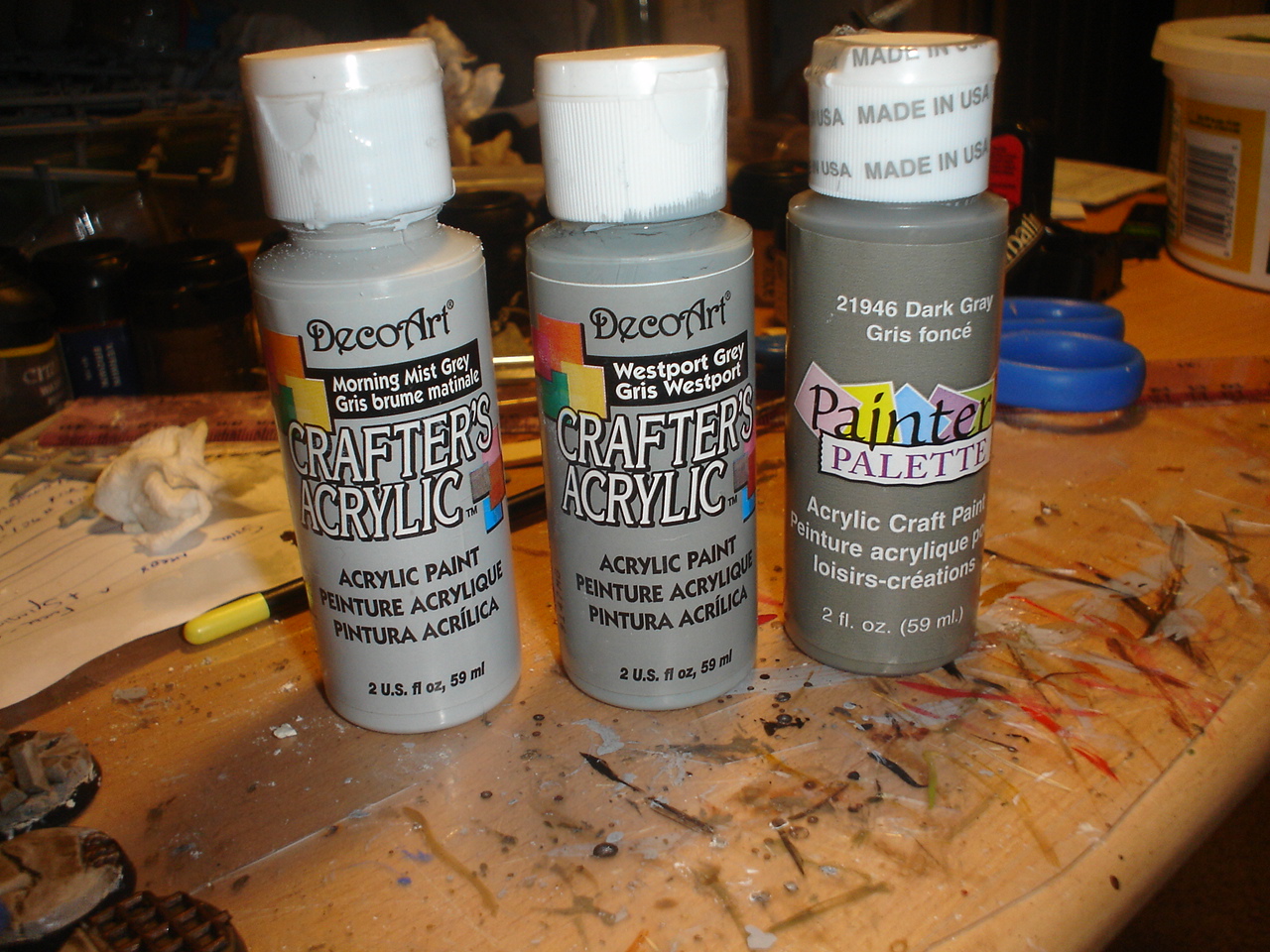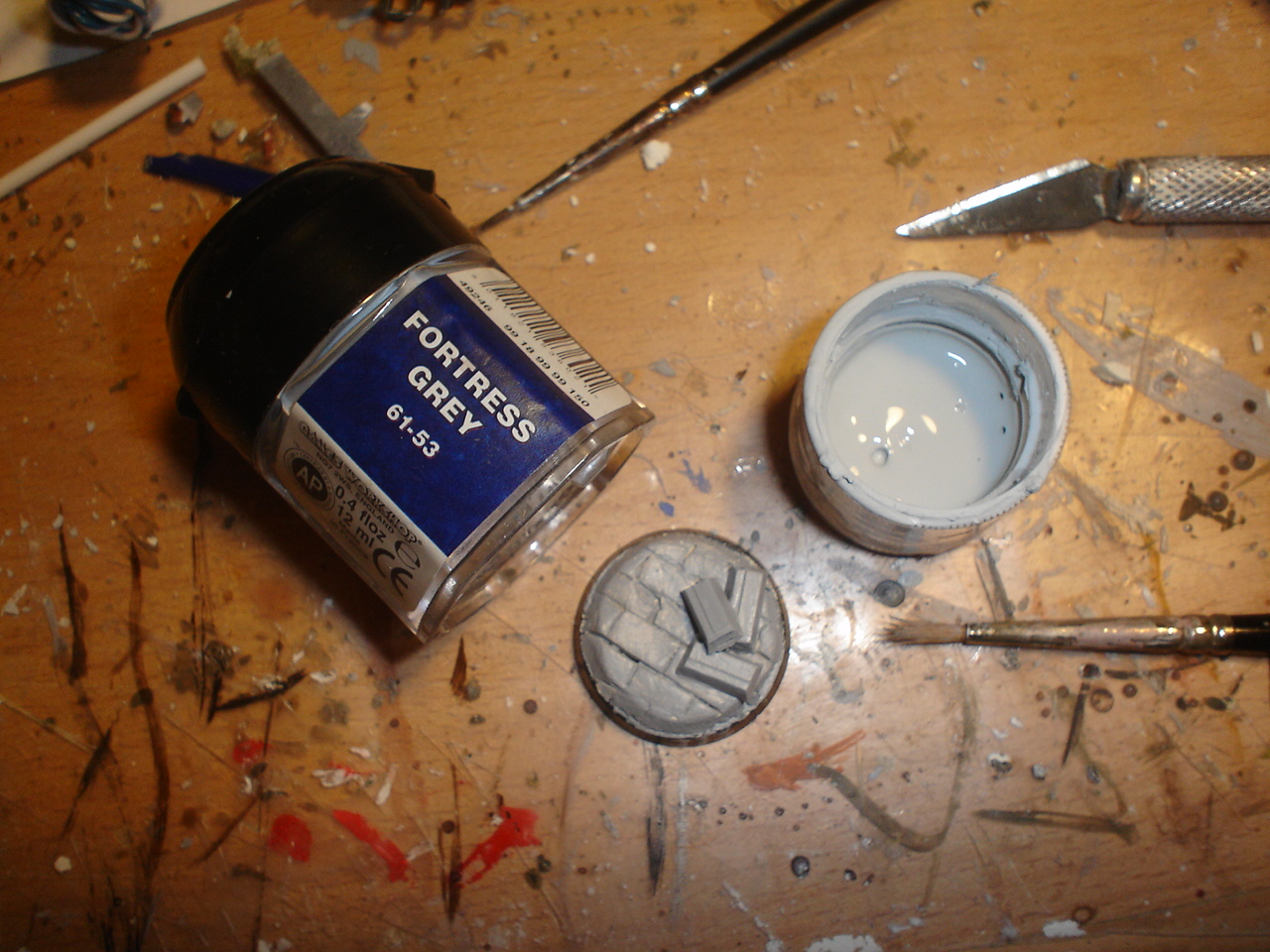 The next day I painted them Fortress grey, drybrushed some of the cheap grey paint on to the features and let it set again, before giving it a wash of denab mud.