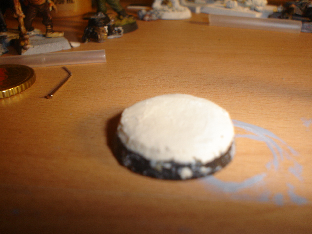 You dont have to cut the figure off the base if you dont want to. You can just get a tooth pick or a wooden coffee stir stick to push to glue around the whole base and up close to the foot, then dip the base in sand or flock, stick a few small rocks in place first if you like. That is what I did with my Space Marines. Each Marine has their very own S.I.R. unit, Standard Issue Rock... Never leave the base with out your cover save.