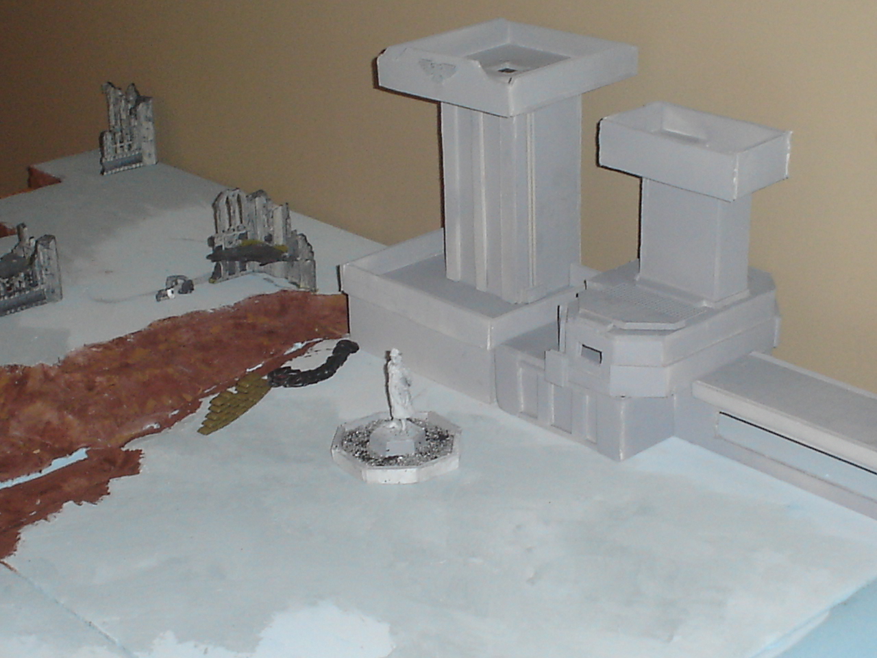 As well, I threw in some pics of the game table I am starting. I am just building structures out of foam board for now, and plan on adding bits and plasticard until the look acceptable. It is a project I am in no hurry to finish. The only piece I do want to get to soon is the Commissar Fountain piece, (another piece I plan on using the water effects for).