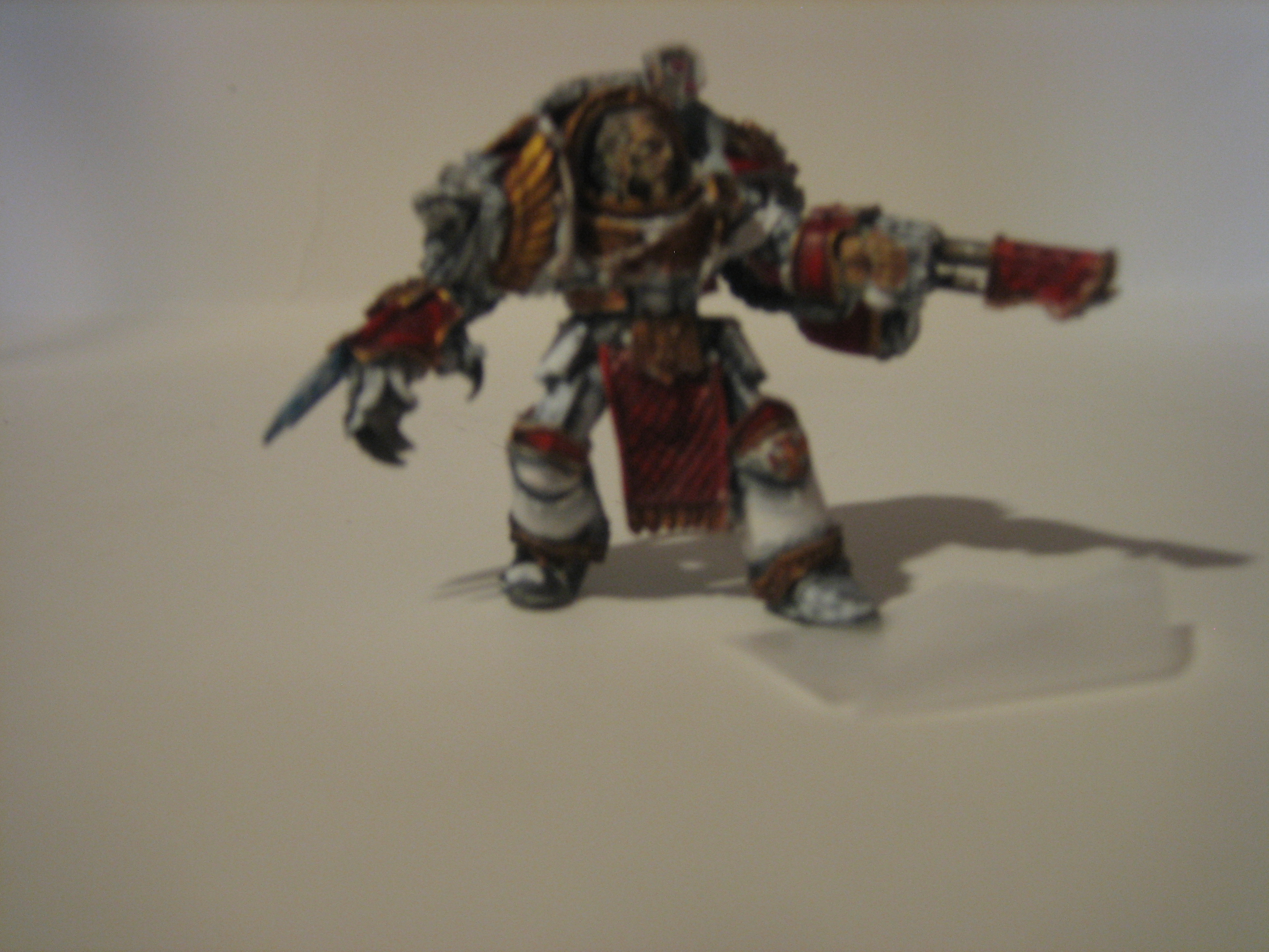 Ooh look! Mr Huron in a snowstorm  JK, he looks great from what I can see of him. Did you try taking a picture of him from further away? And obviously it looks like your cameras macro setting either was not working or did not have one. (small flower icon, but I am sure you already know that) The freehand is very very nice on those tanks although the eagle on the LR really breaks up the lions face too much. Is the eagle attached? If not I would remove it and should look even better. (I also say that an autumn base would go very well with these guys as it will make them stand out a lot)