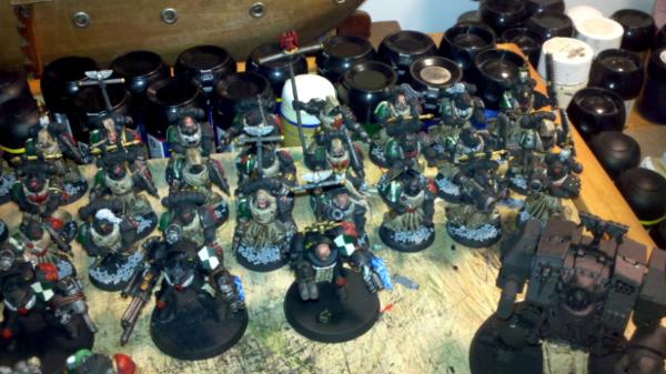 The fallen are constantly striving to find Terra, my take is that they are a good force and that the present Dark Angels are the evil. The fallen consist of the original marines, but now so more of newer marines whom have seen the light. Whether by accident or ambush, these new marines have been told the truth about their so called "Lion." The truth is that they have been lied to, that there are hidden reasons behind the current Dark Angels motives. The Fallen are fighting their way to Terra in order to tell the Emperor of the real heresy. With that said, there are new marines constantly joining the Fallen. Many of which still keep their company/squad markings. Also each model/vehicle has a bit of