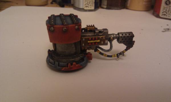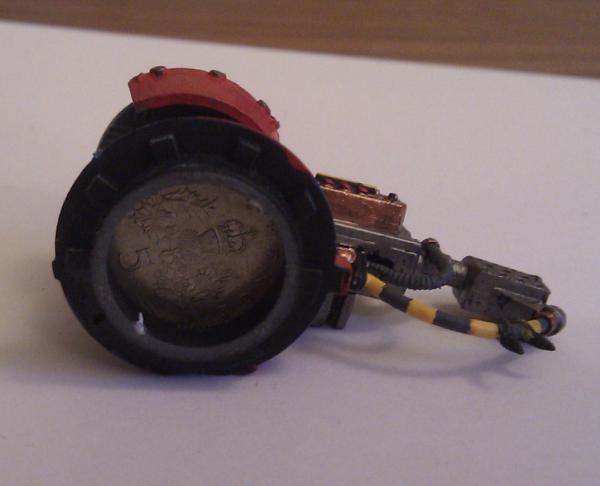 I did have issues with firstly anchoring the skorcha into the cuppola, and secondly, it falling out whenever the model got moved. So I found a simple solution: Use green stuff to stick the Skorcha to a 5 Pence piece, the glue it onto the top of the cuppola. Perfect fit and a perfect weight too.