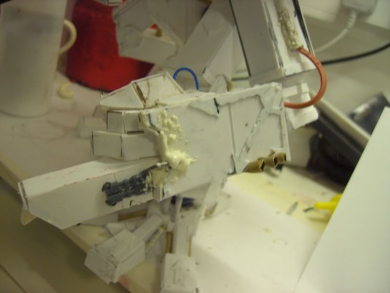 i will repeat, the card hull will be covered with well cut and shaped plasticard, this is just to give people a sense of the shape. i will explain some issues before they arise