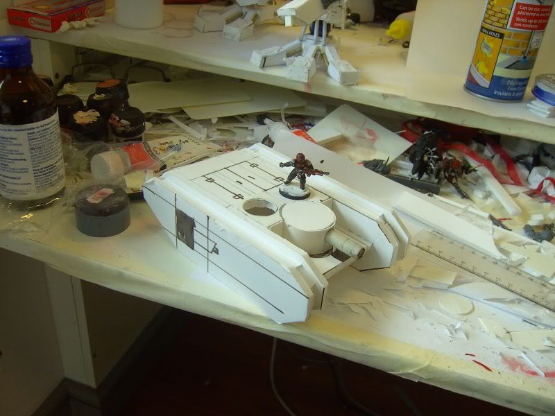 Hehe, nah, its the mock up for it. i'm building onto of the eldar fighter of a similar design, FW has a flat bottom side photo so i've scaled that to an a4 piece of paper to avoid making the thing too large, i wanted something easy to pack and unpack.