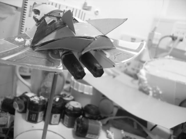 Two things. Since context is offically wussing out this thread will get a title change at the weekend. In the meantime, i've completed the basic mock ups for the upper section of the fighter (pre-weapons, nosecone and fins that arn't pricksticked down)