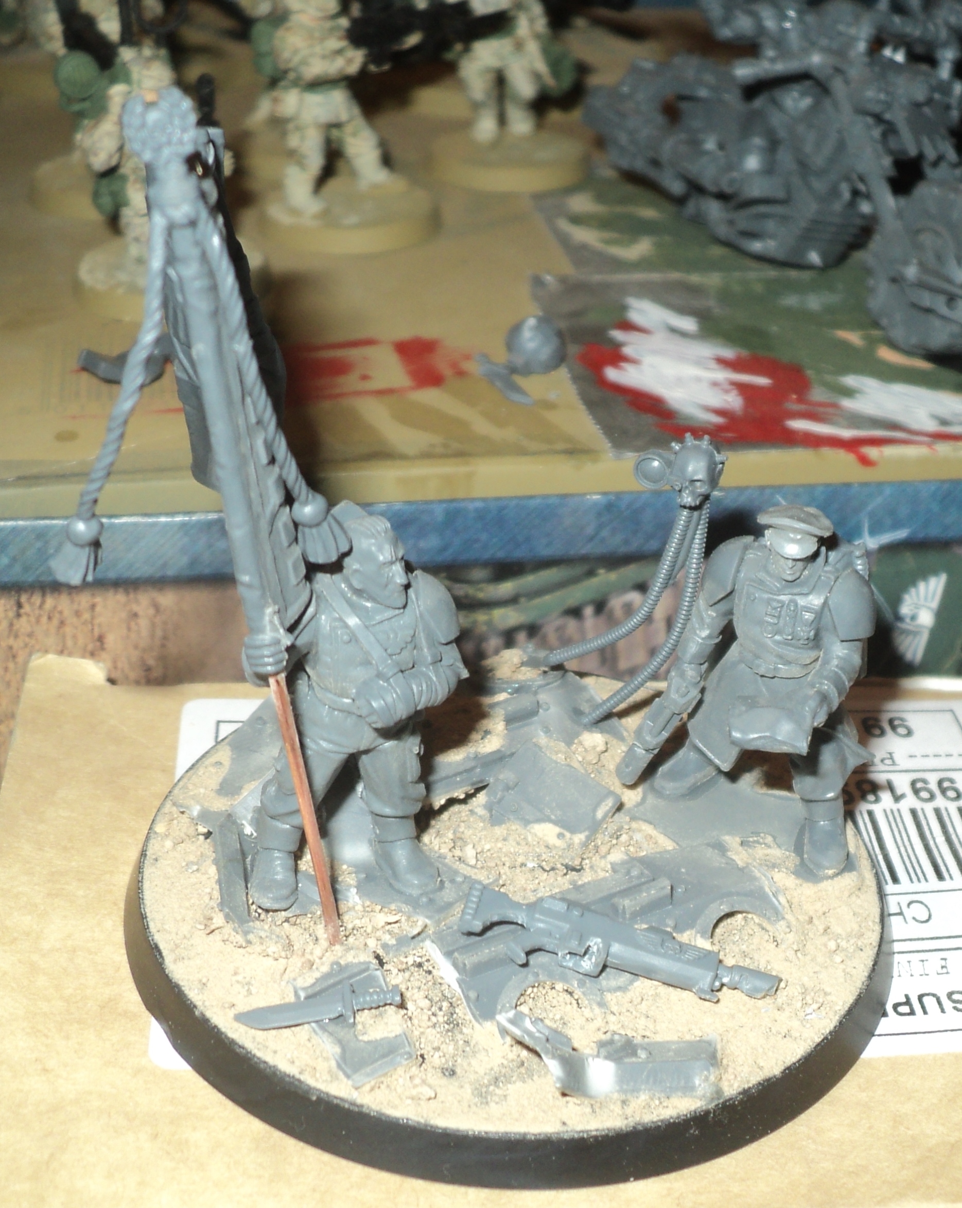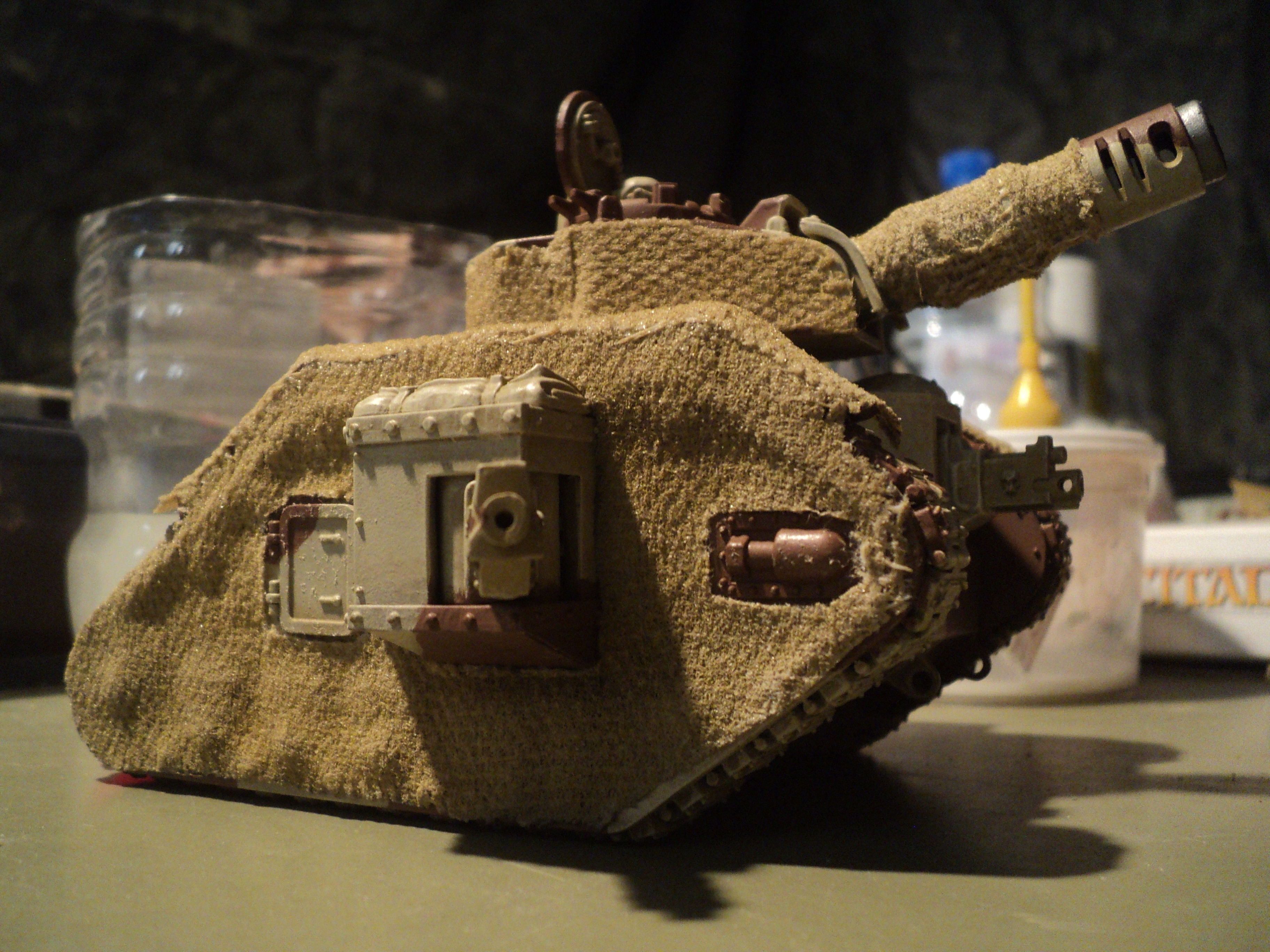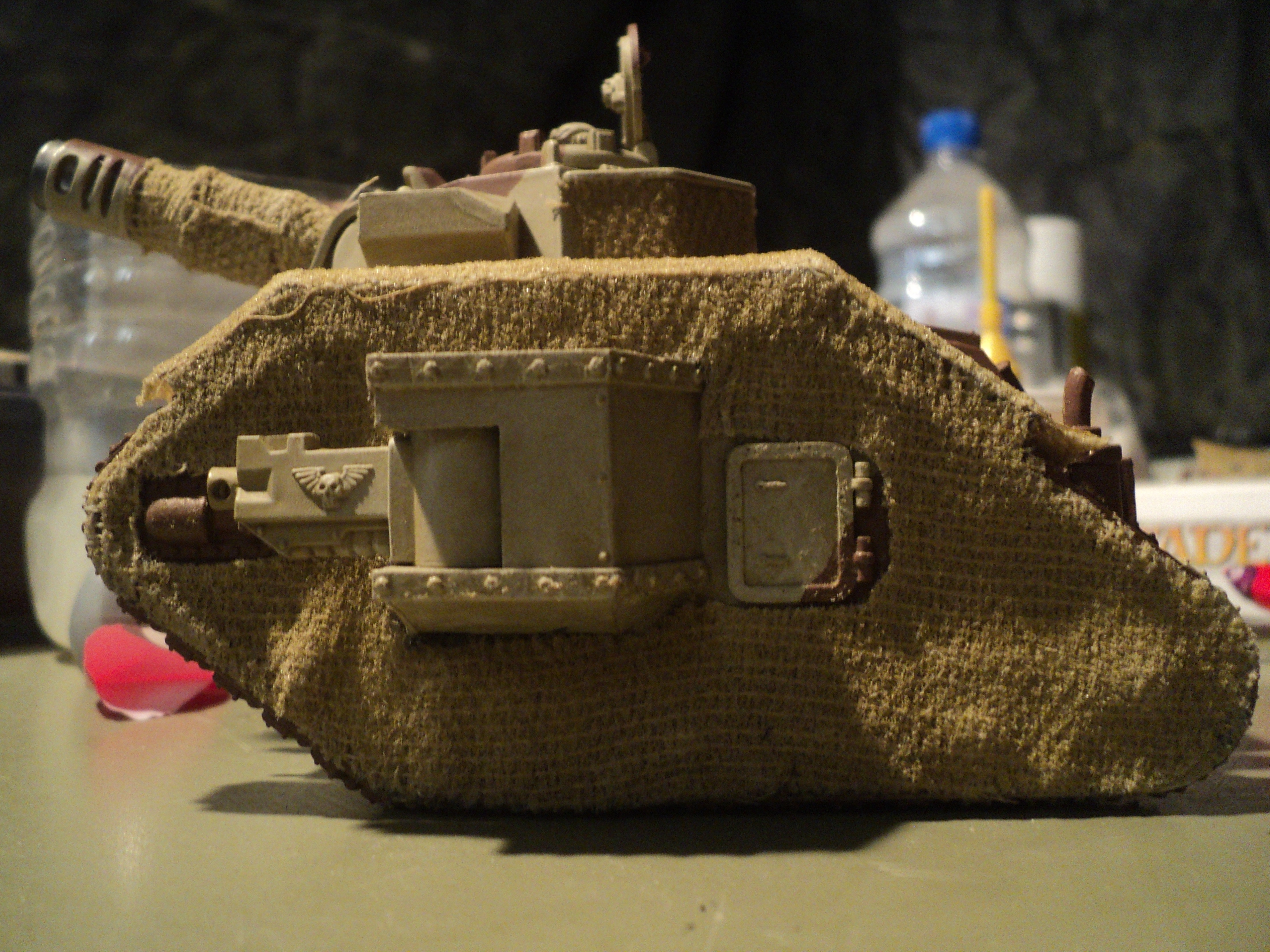 I'm really digging this! The reference material really brings a sense of reality to the army, the camo scheme is awesome and the leman russ (I think its that? DE player here...) looks fantastic with the covers. Brilliant. Subscribed.