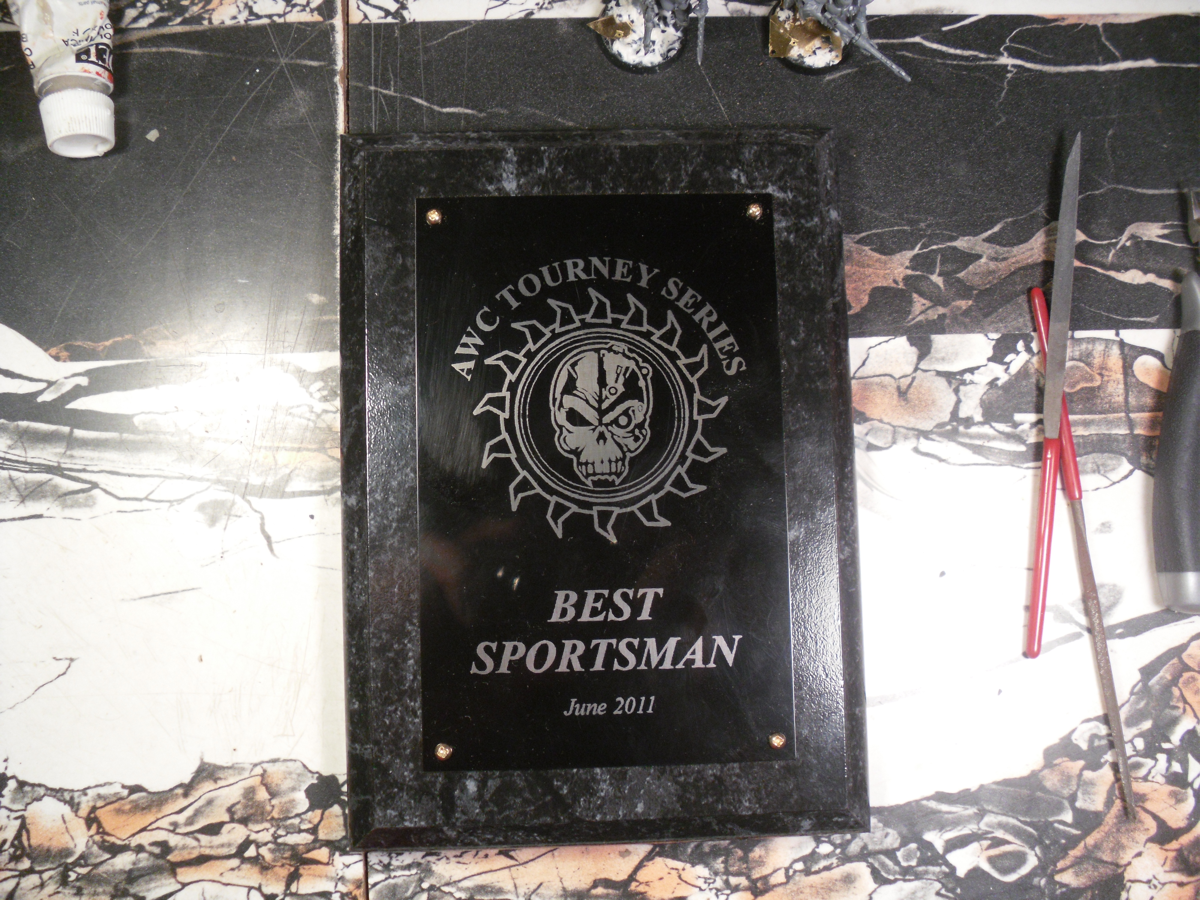 Got the CCS done last week, and went to my first AWC tourney this weekend, got my butt stomped into the ground, but pulled a best sportsman out of it! here's some pics for your enjoyment. As for the Dark Eldar, my gaming club is going DE for Adepticons Team tourney next year. Chicago KAMIKAZE'S!!!