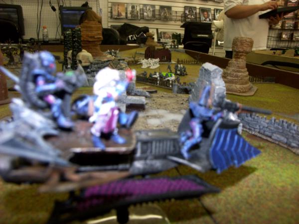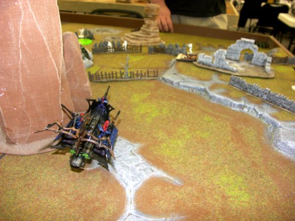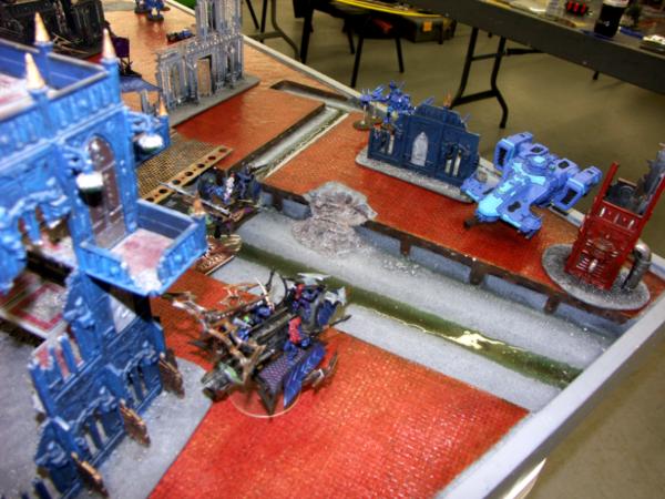 Yeah, at the end of Turn 2 I realized that I should have started on the board. I was thrown off by the fact that the DE are a double threat, shooting and assault, and my rule of thumb is "Start on the board vs. assault armies, and off the board for shooty armies". I chose... poorly.