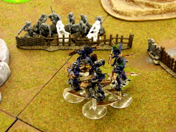 On the flip side the Sentinels fire off their HKs at one of the Ravagers (which kind of shows how weak the Venom’s shooting had been last turn) but, his roll is less than optimal as well.