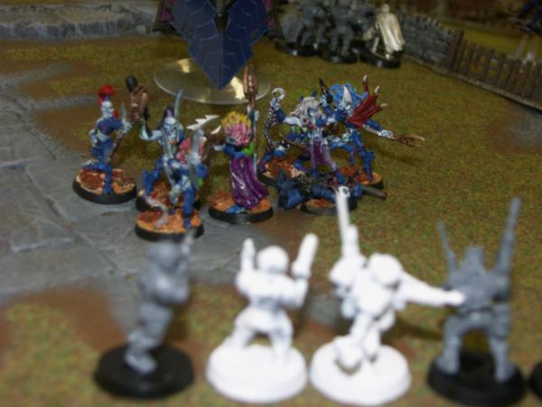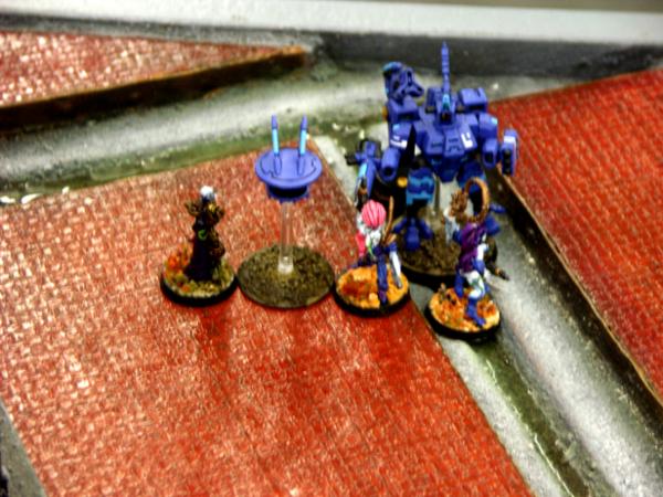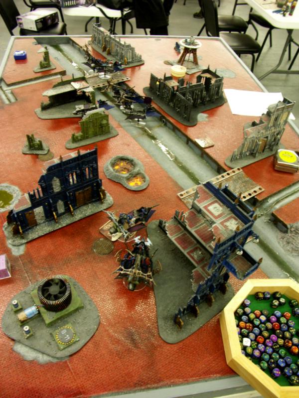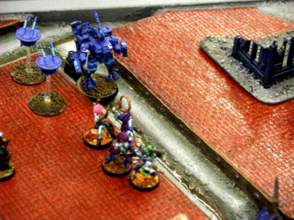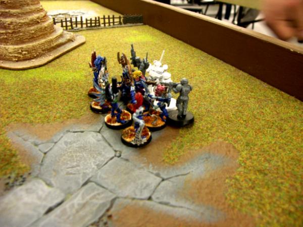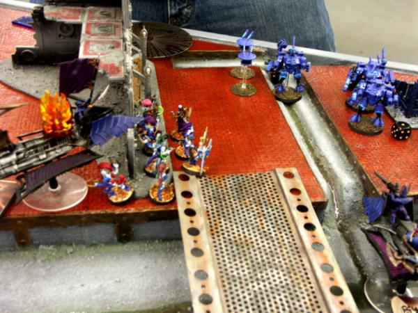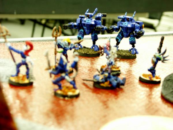 Tau vs. Dark Eldar – note the lone Wych in the background that managed to claim an objective and the eventual win. A very bloody match.