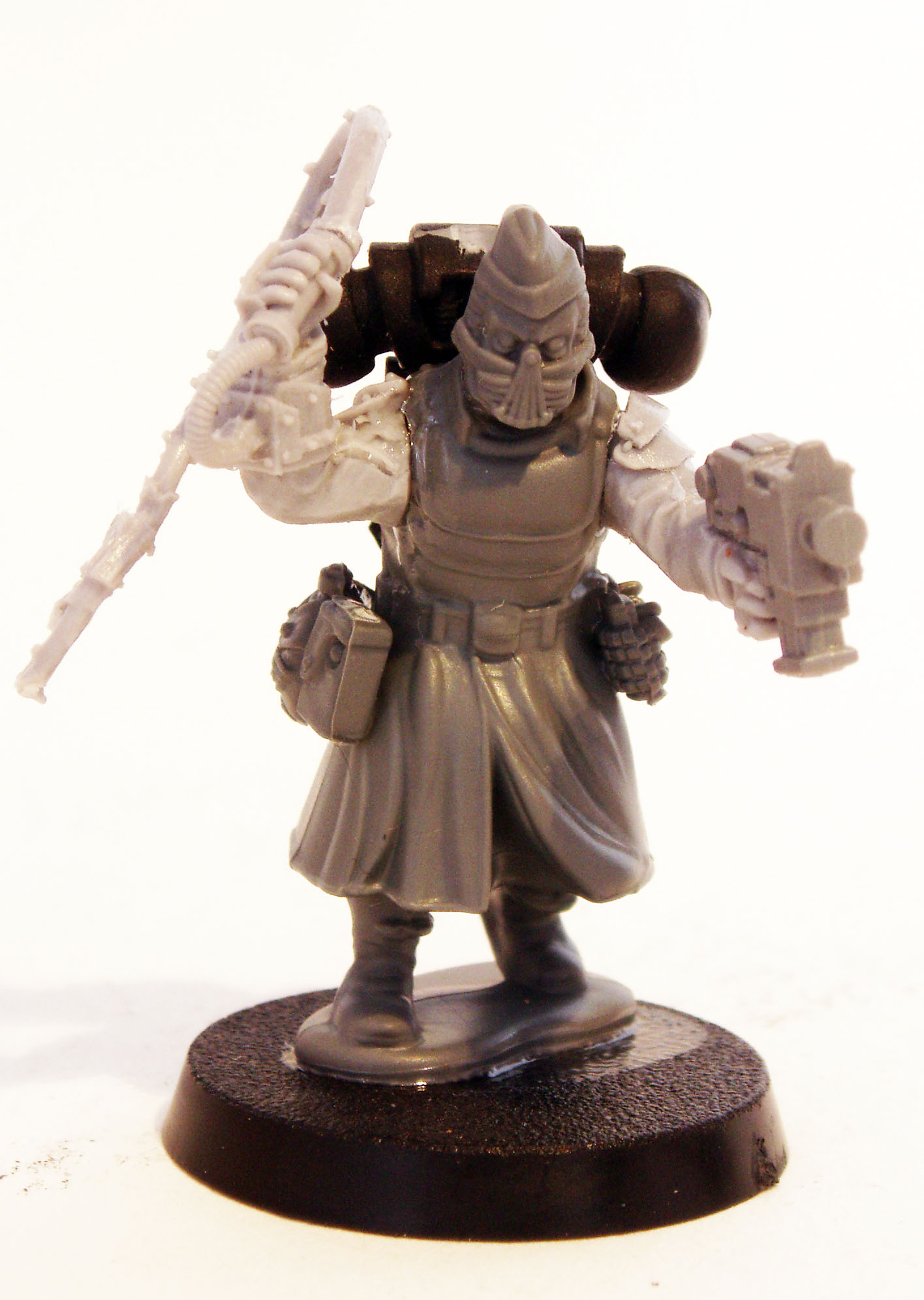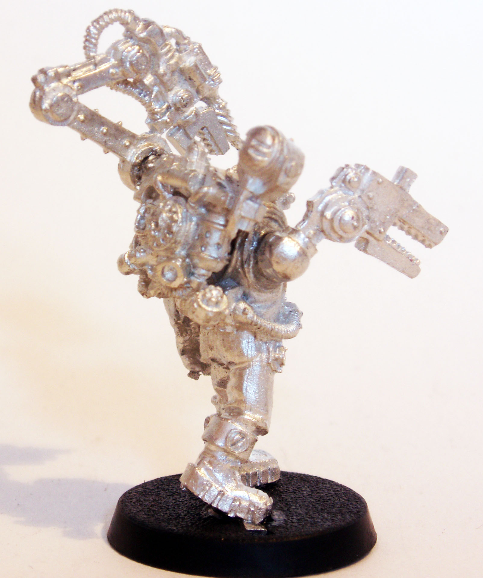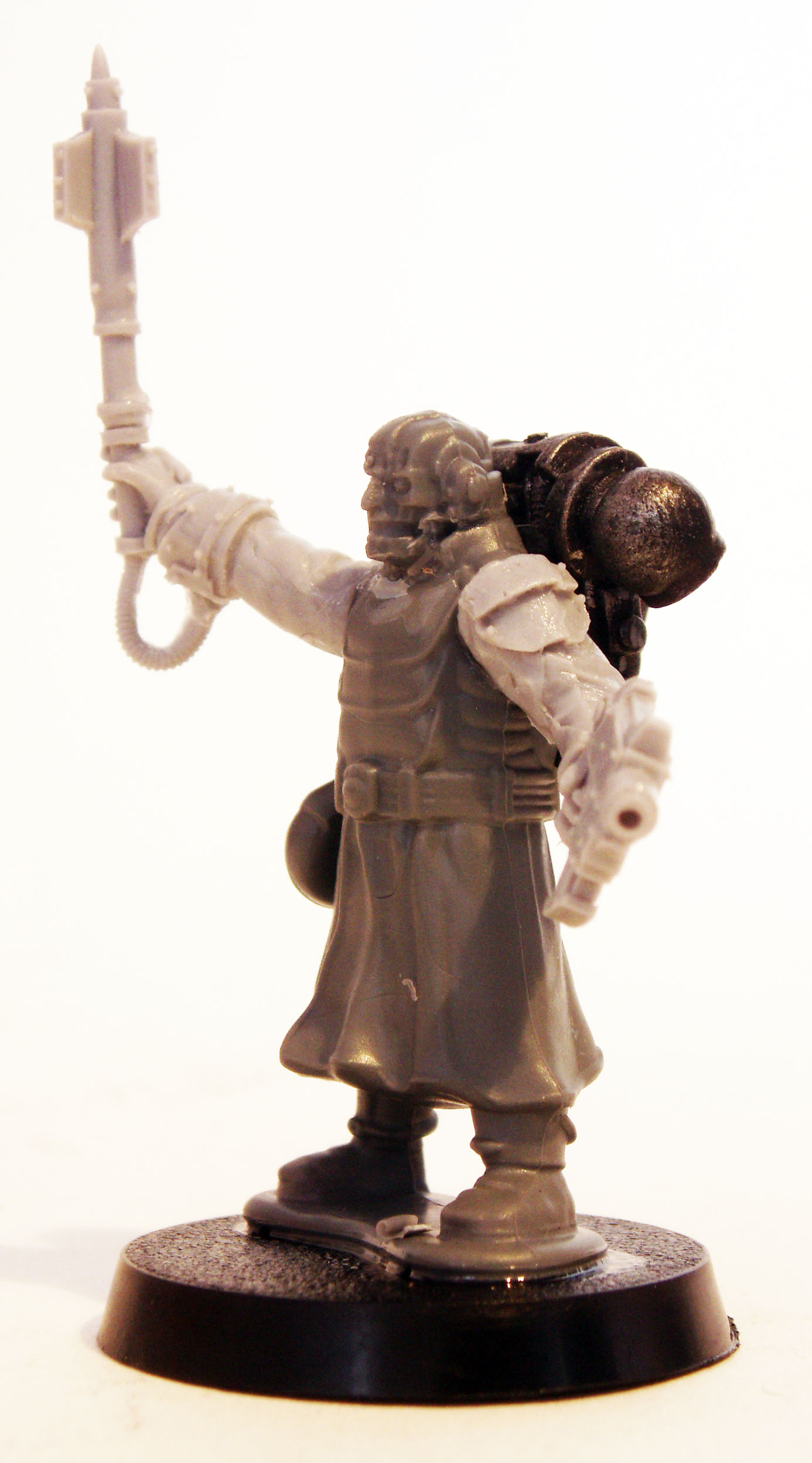 just assembled my tech priest and servitors, will represent the cult mechanicus for my army. didnt like the puny back pack that came with im so supersized him to the tech priest pack! far more fitting for a priest of the dark mechanicus!!