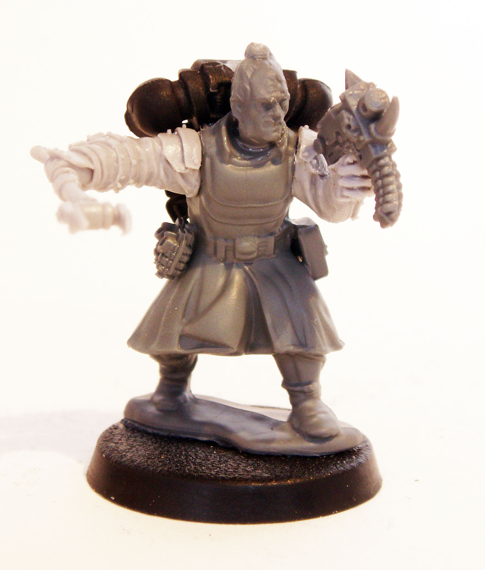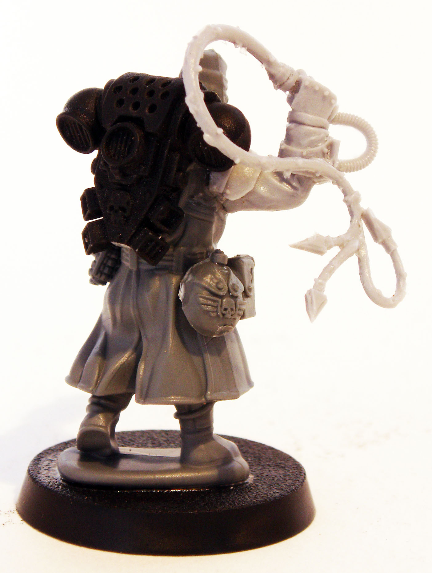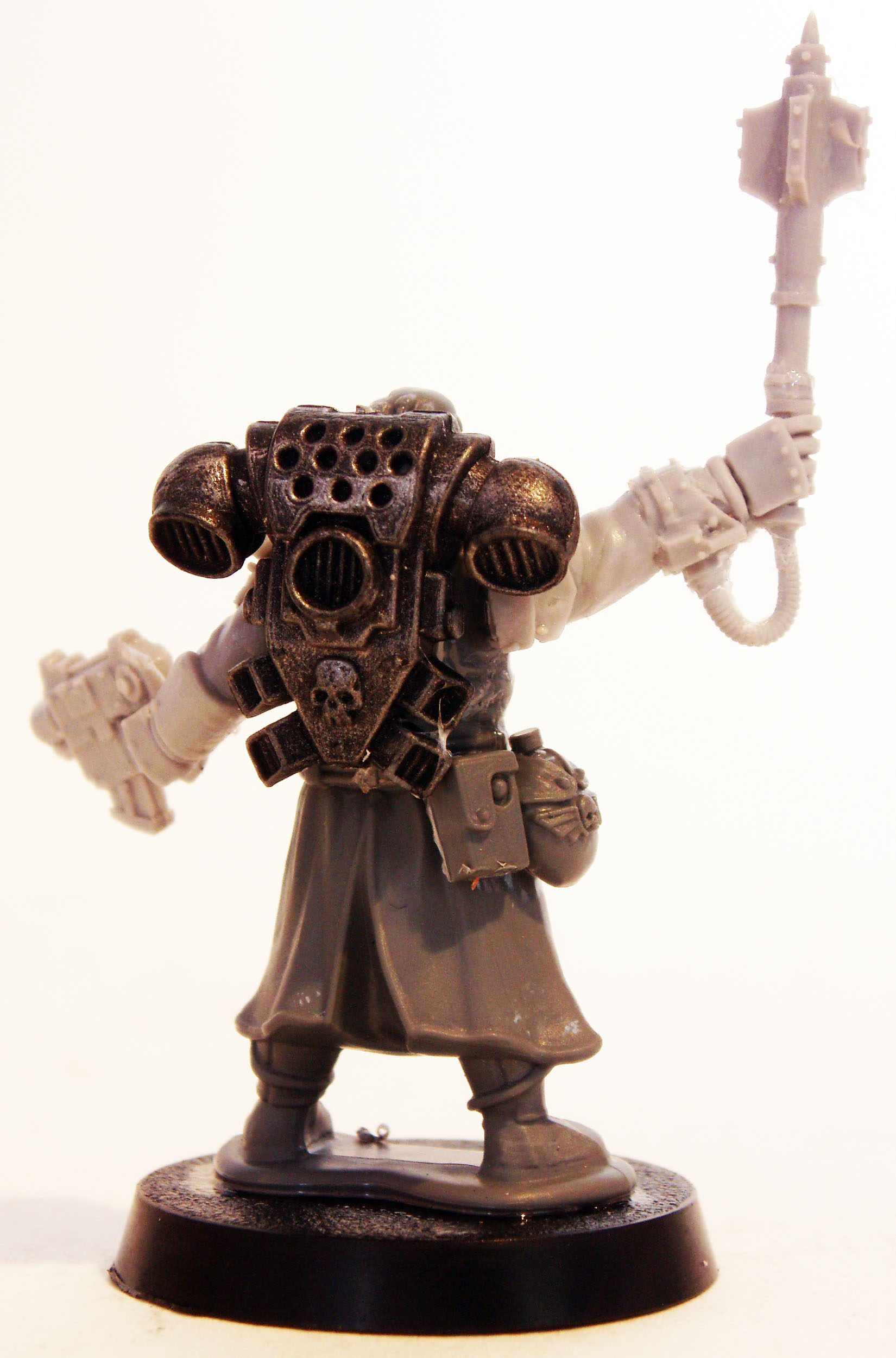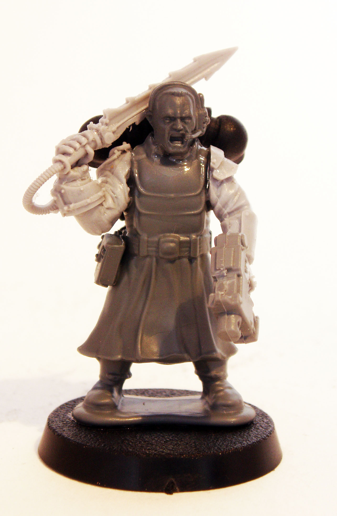 just assembled my tech priest and servitors, will represent the cult mechanicus for my army. didnt like the puny back pack that came with im so supersized him to the tech priest pack! far more fitting for a priest of the dark mechanicus!!