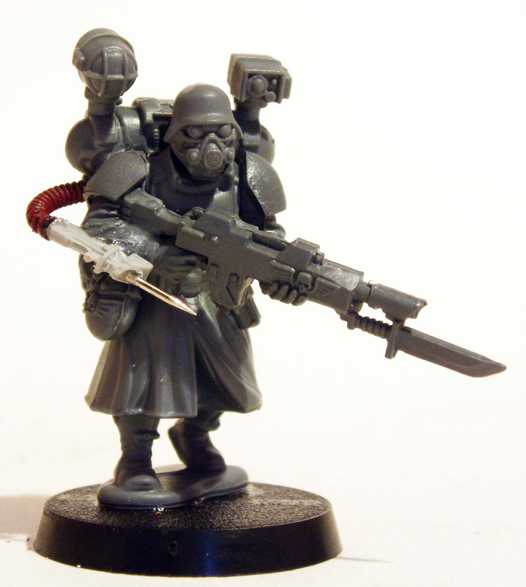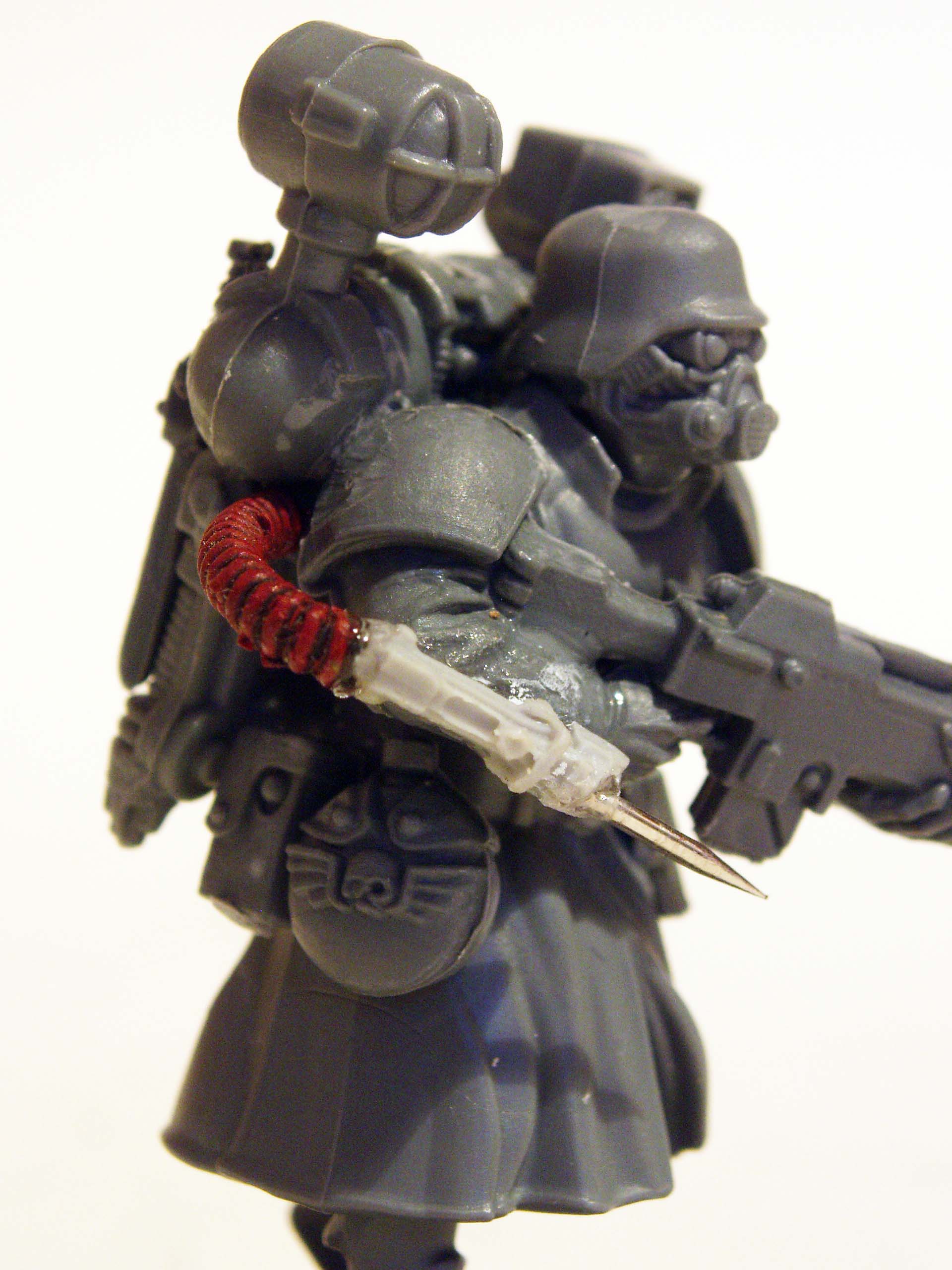 After sitting back and having a better look at my Platoon Command Squad i decided my medic just wasnt medical enough! So with a little bits and some funky tubing, hey presto! Very medic now! ^_^