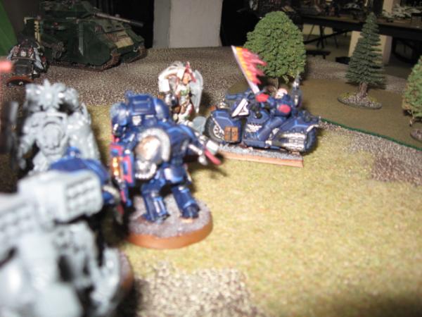 I think the dice were more a factor than anything in that game. Every damage roll I made caused an explosion, and Dave's Chaos Lord fell off his bike moving through terrain, then got beat in combat by Long Fangs.