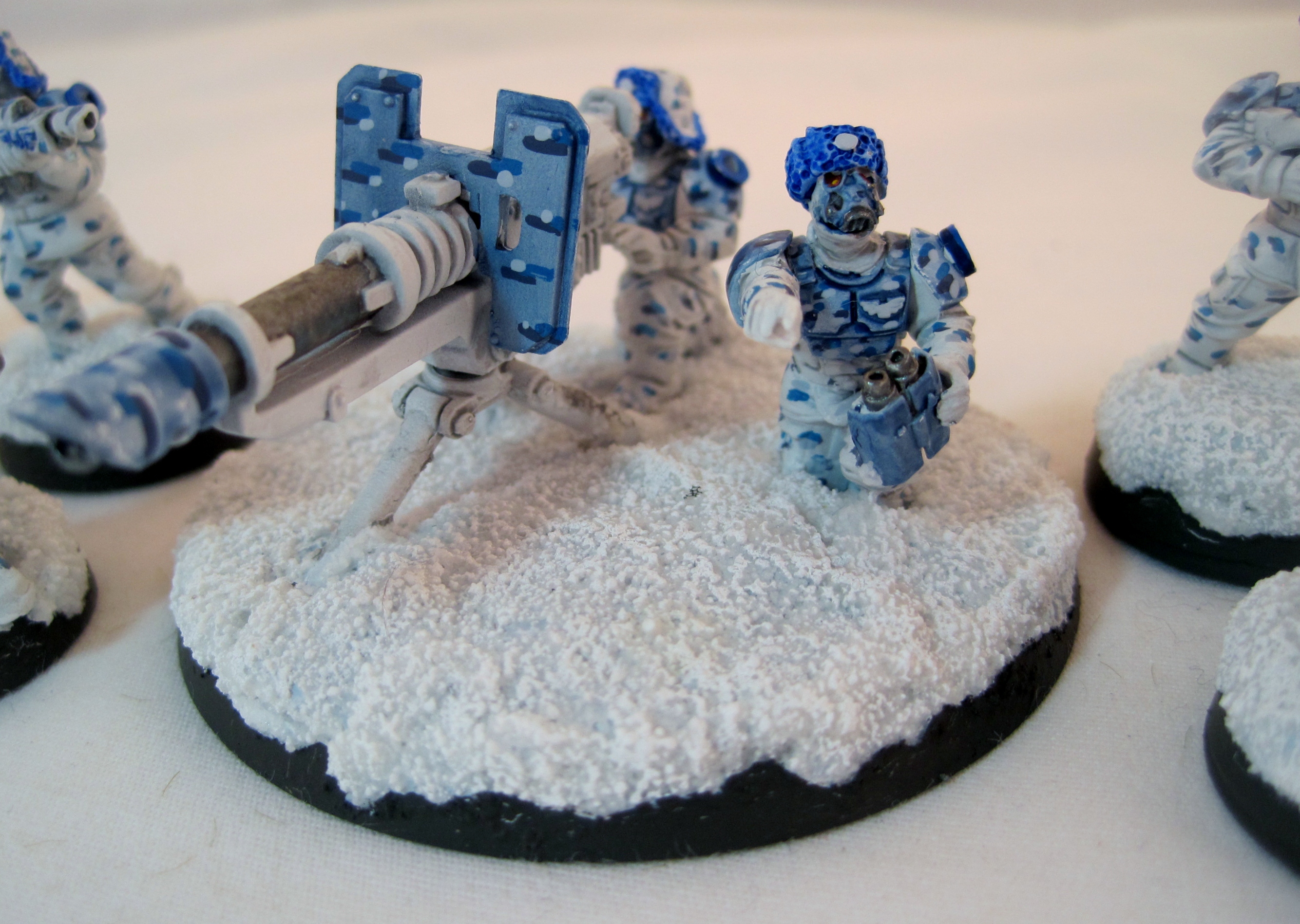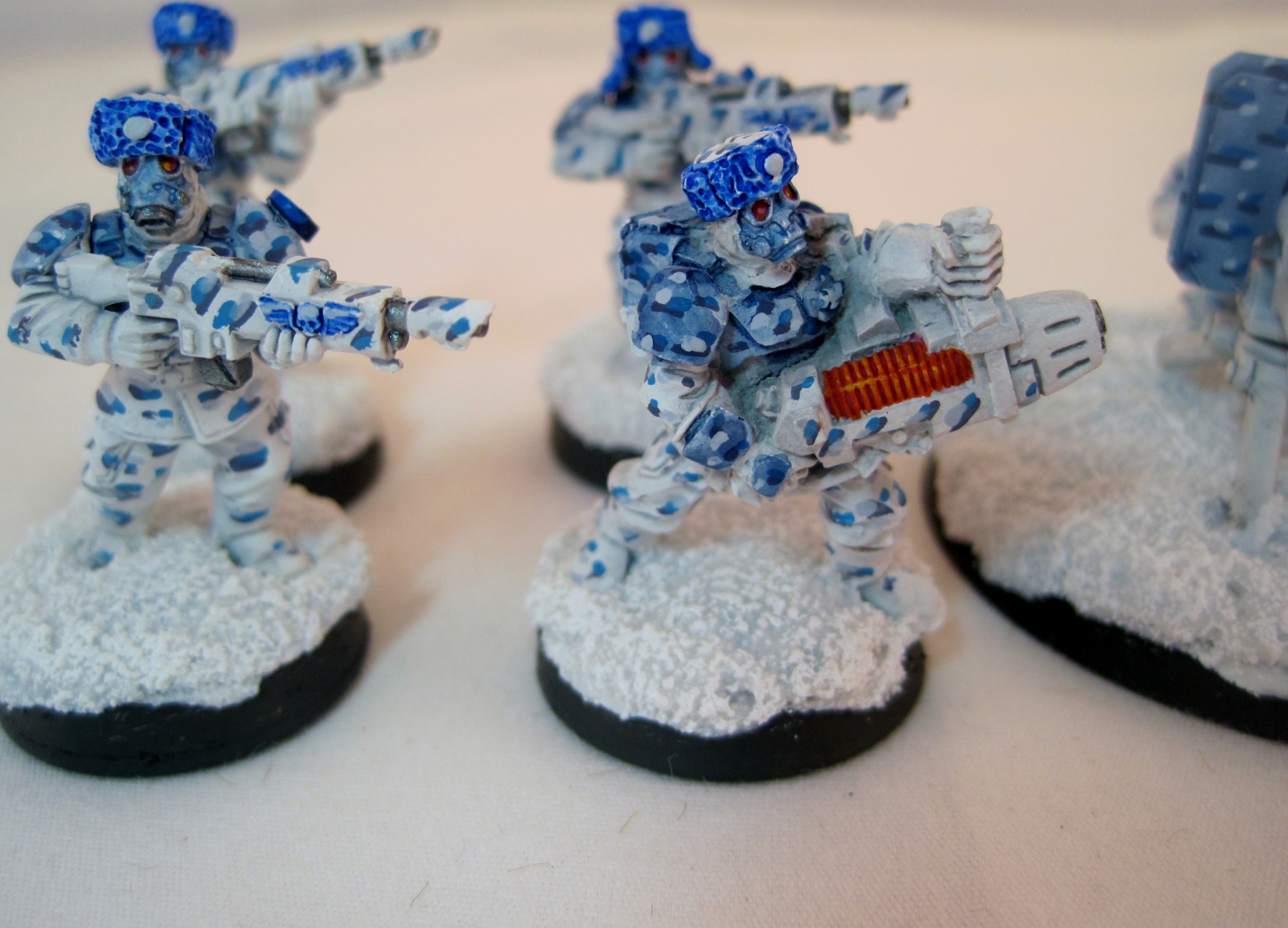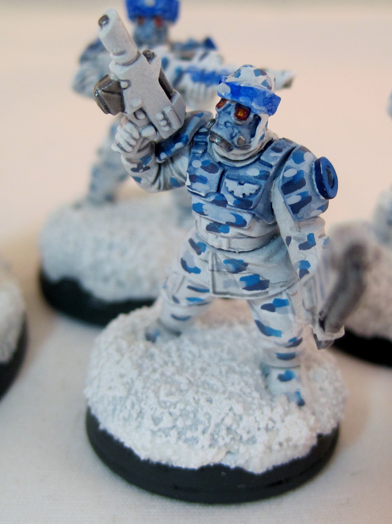 Like the enclosed faces on all the models, makes them stand out along with the very effective camo. How did you decide on the special weapons for the different environments, or did you just do it?:L