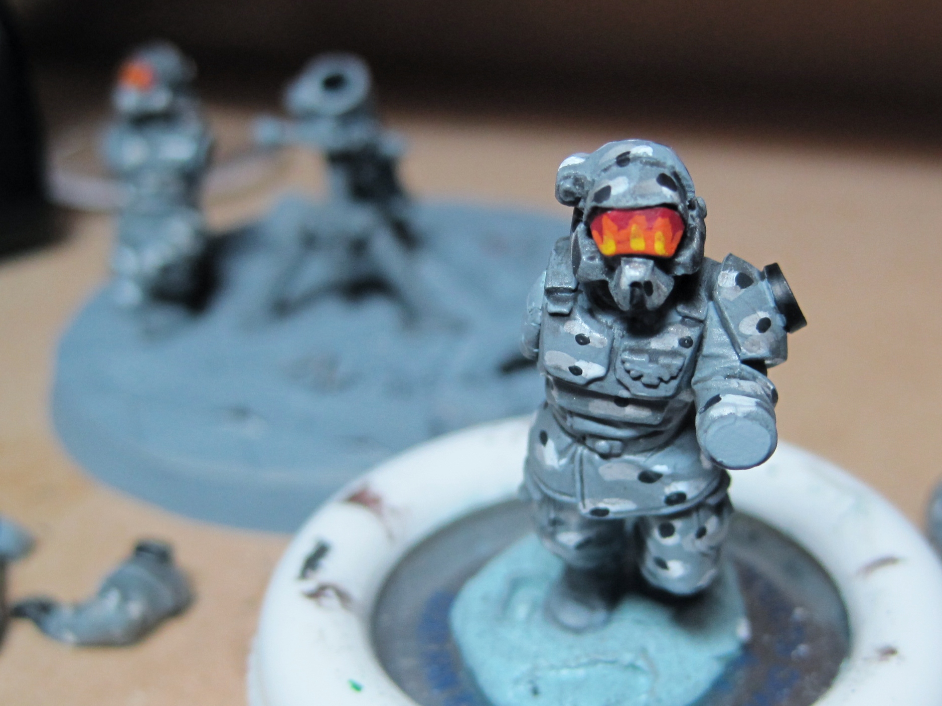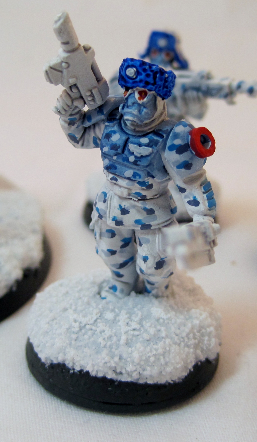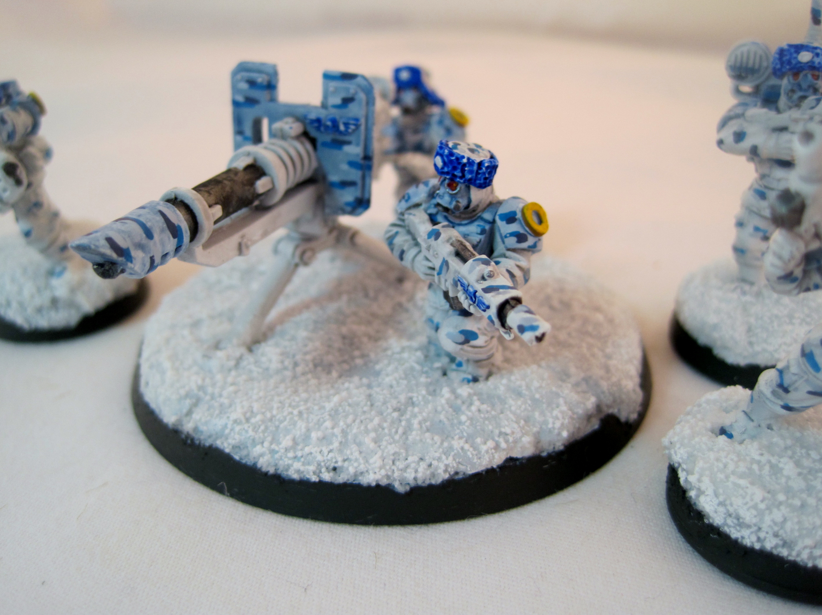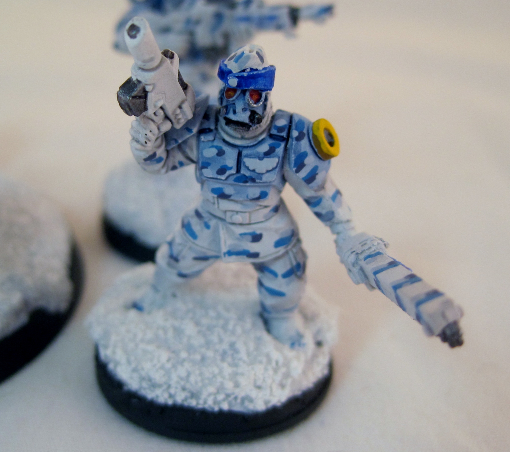 Like the enclosed faces on all the models, makes them stand out along with the very effective camo. How did you decide on the special weapons for the different environments, or did you just do it?:L