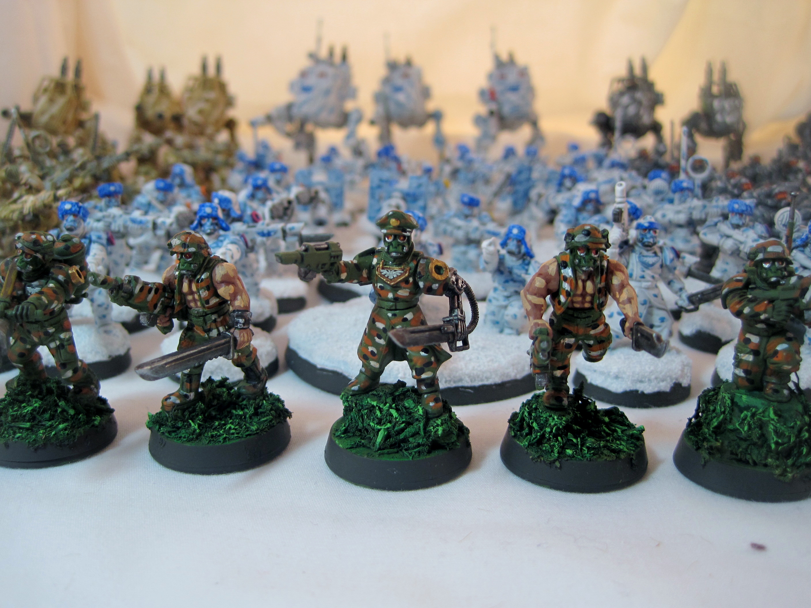 Thanks. Painting 100+ guardsmen the same colors was NOT an option. I can barely make it through a space marine army