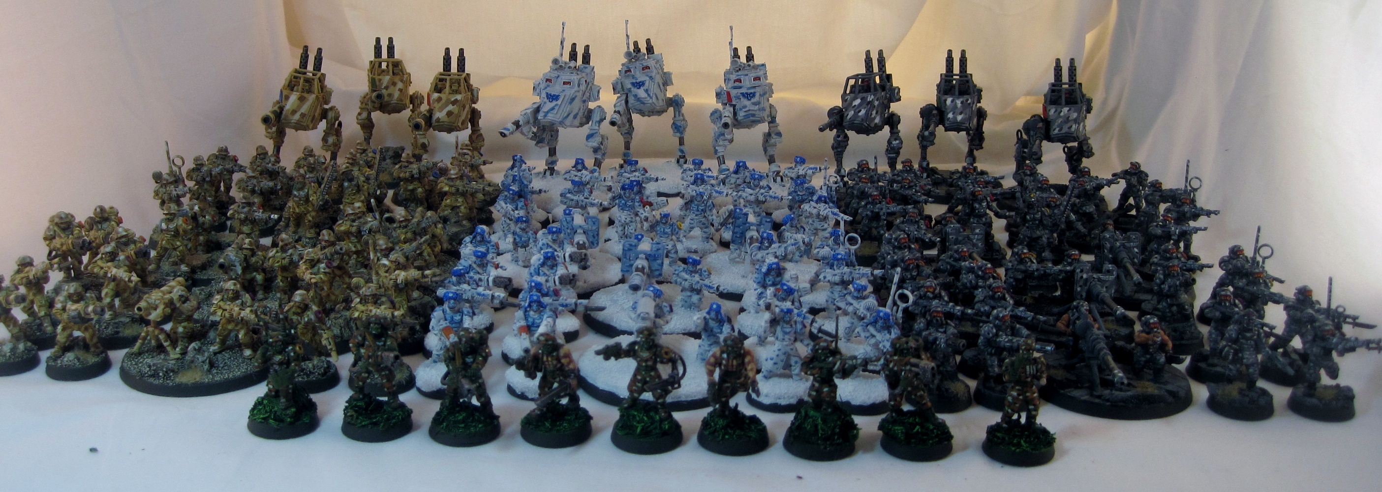 Llamahead wrote:Part of me thinks the seperate camo types look silly, Part of me thinks the seperate base types look really silly, Part of me thinks the Munitorium screwing up would easily explain it, Part of me knows exactly why you did it, part of me thinks why not turn it into 3 seperate armies. All of me thinks this looks great!