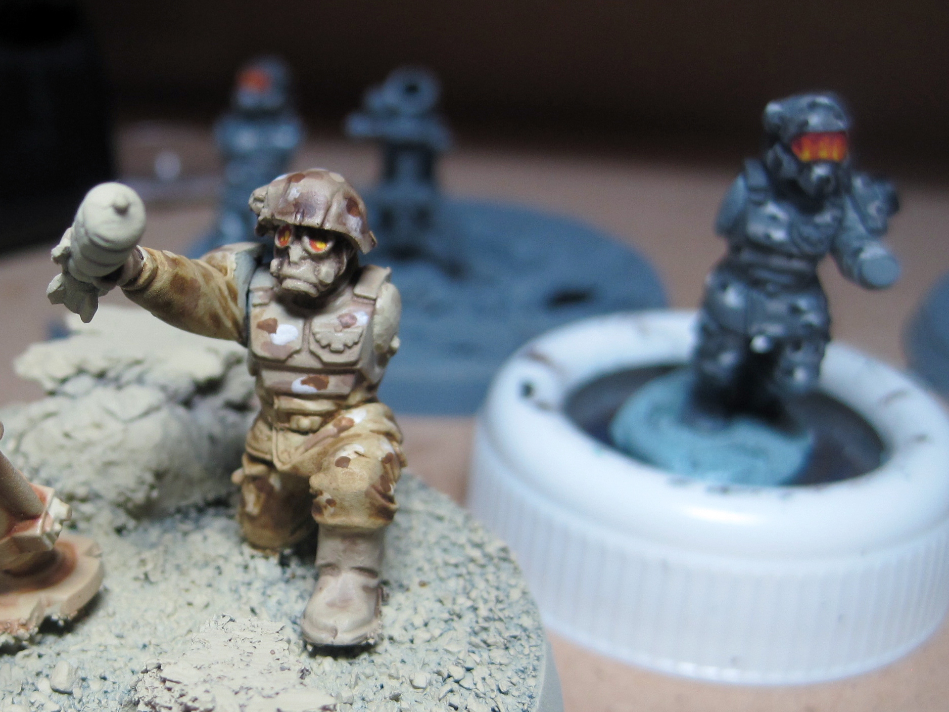 Here are some WIP pics of an infantry squad. Pretty much the only thing left is to paint the metal parts .... erm ... metal.