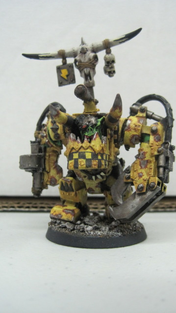 I am cuurently painting up a badmoon orc army. This is how my yellow is coming out with battle damage included.