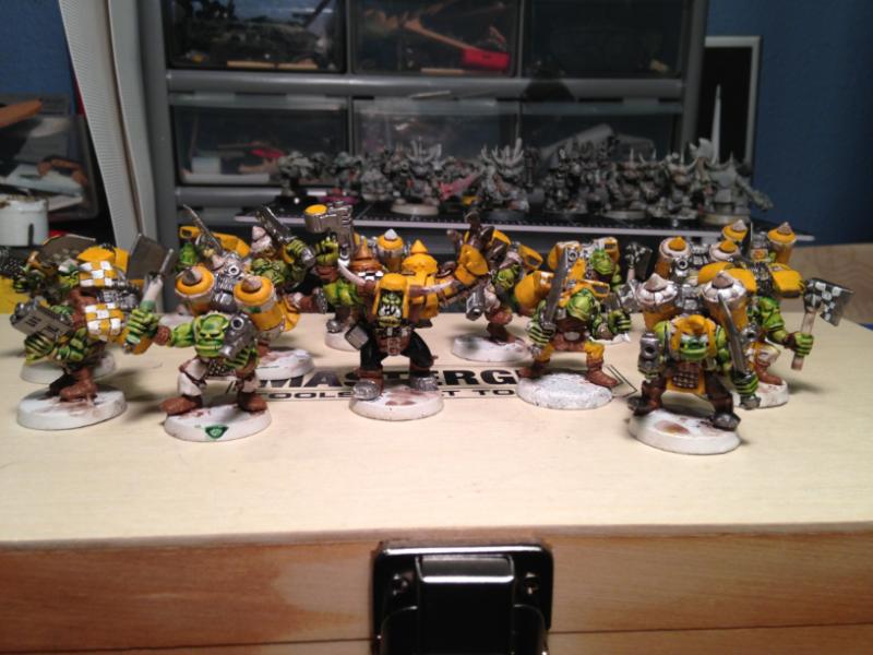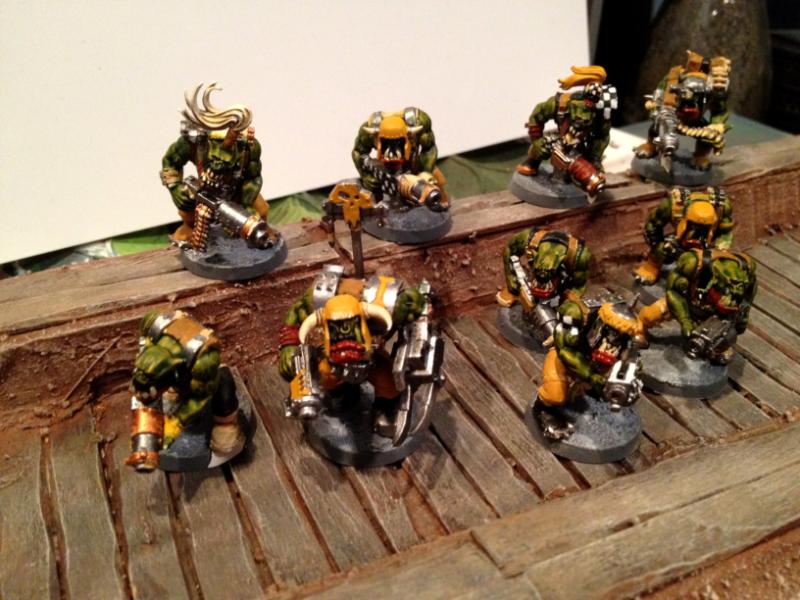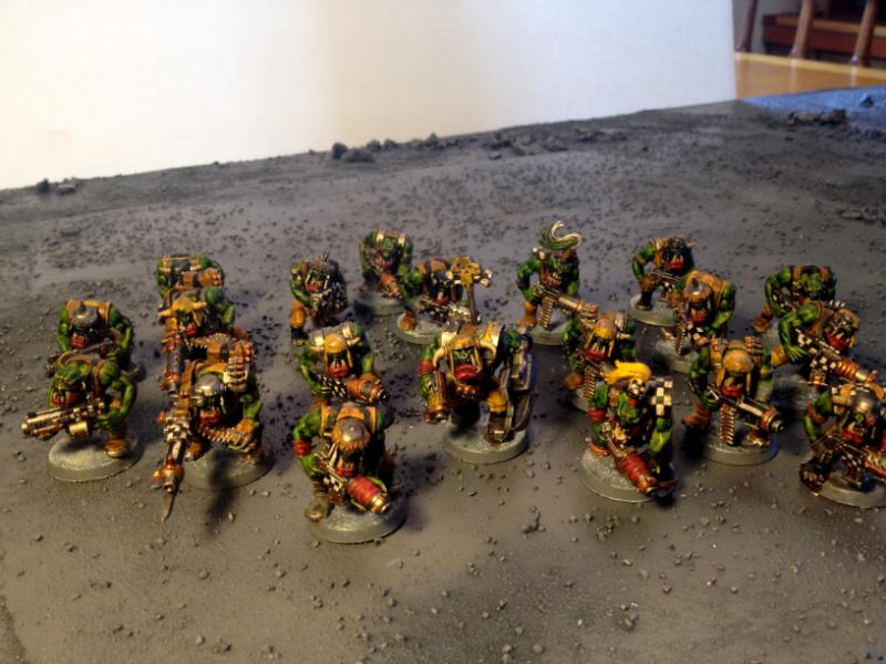 So, I really need to update more. UI often forget how little I've posted of my horde. I've got a lot of out of date stuff on the first page too. My Nobs have been ripped up, five to become thos e dead 'ard megas, and the others are sitting in a box waiting for more. Thanks for looking.