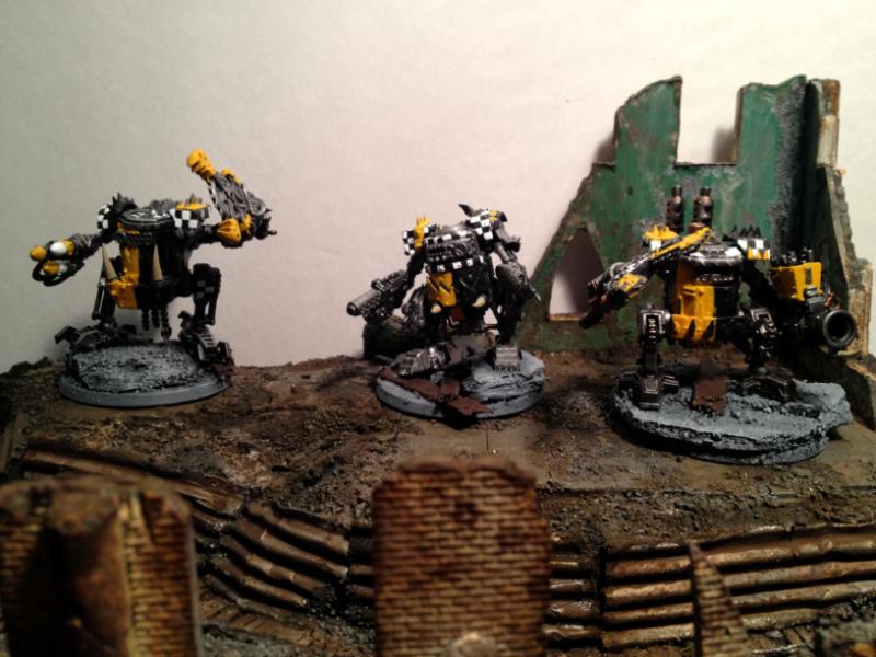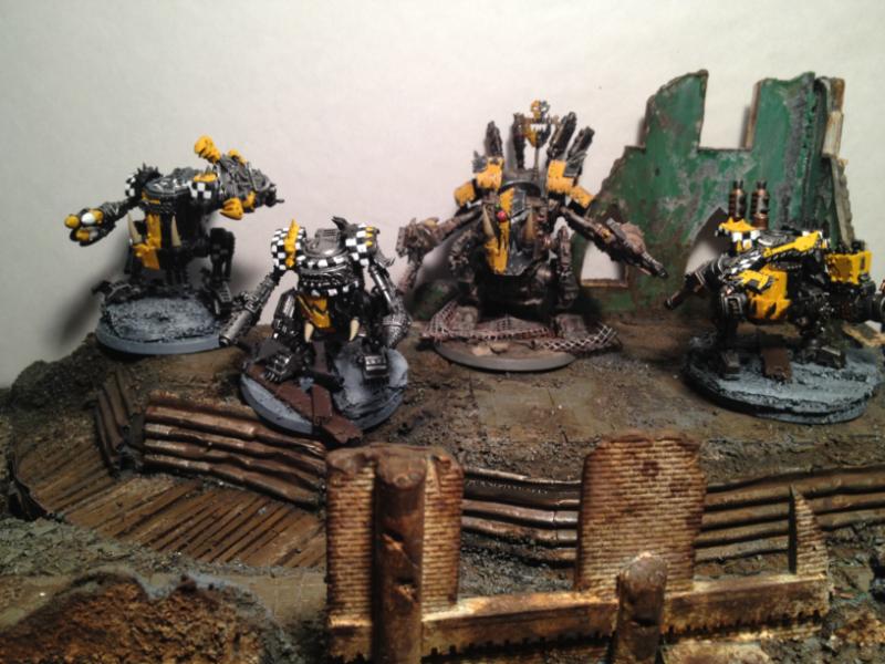 Now, here is a stompy shot of all my walkers With Escalation and a Big Mek, these can all be in the same list. StompStompStomp: