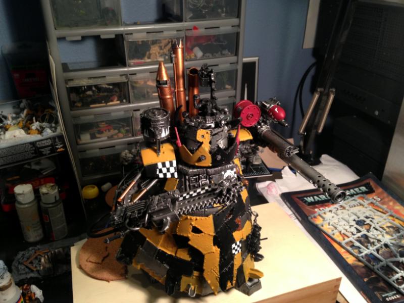 Got a bit iof a Stompa update. Since I am so used to trying to paint yellow, I had sprayed this thing white. HUUUUUUUUUUUUUUUUUGGGGGGE mistake. It's mostly metal dummy!