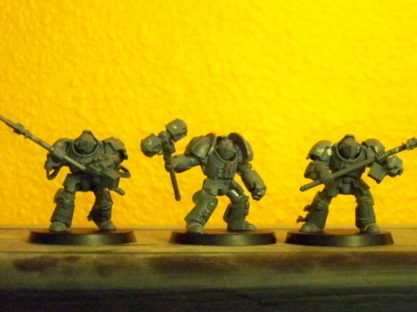 Heres a quick pic of the first 3 GKT Ive got put together. Very mild changes, shoulder pads on 2 of them, pads& arm on the other. Still have 2 more on the sprues waiting to be done.