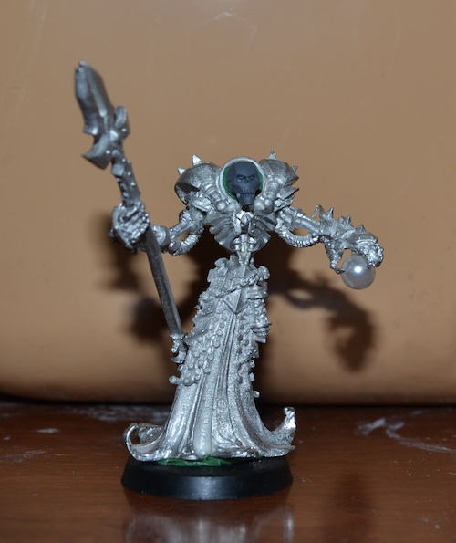 Well my newest acquisition arrived today. Most Cron players say he isn't worth the points in a game, but you can't have an army with out their evil god of death can you? Even if it is just a dsplay piece. I got him for next to nothin, but now I need to get the paint off.