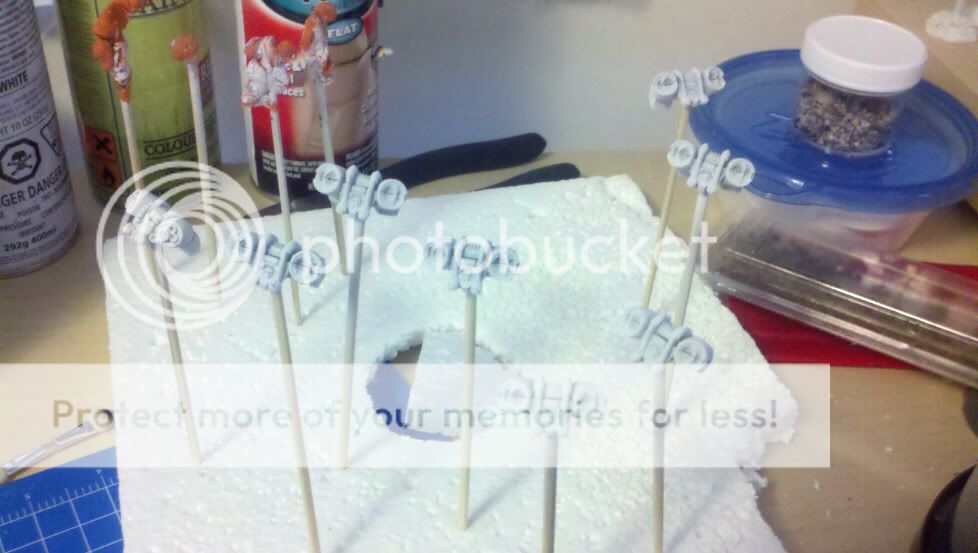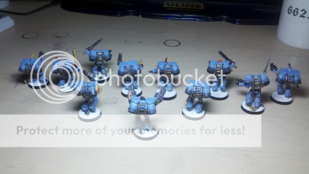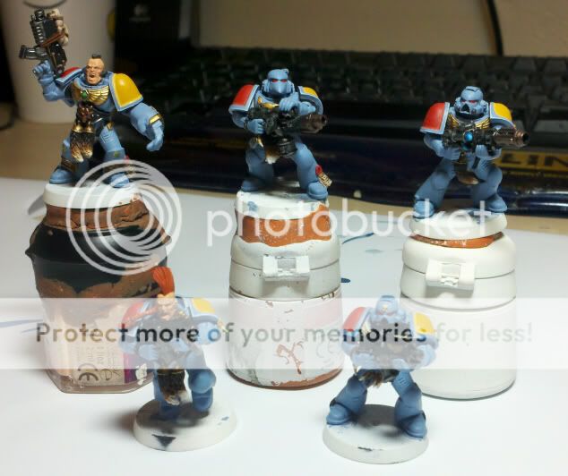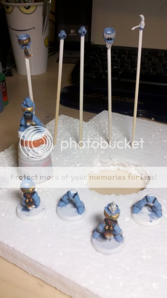 Grey Hunters in progress. I hate to mass produce/assembly line like this, because I'm constantly having to go back and forth fixing little mistakes on 5 different minis at once. I'm used to doing them one at a time pretty much completed then moving on to the next, but that is taking waaay too long to do. So instead of getting maybe 2 or 3 done in a week, I'll get these 5 done.