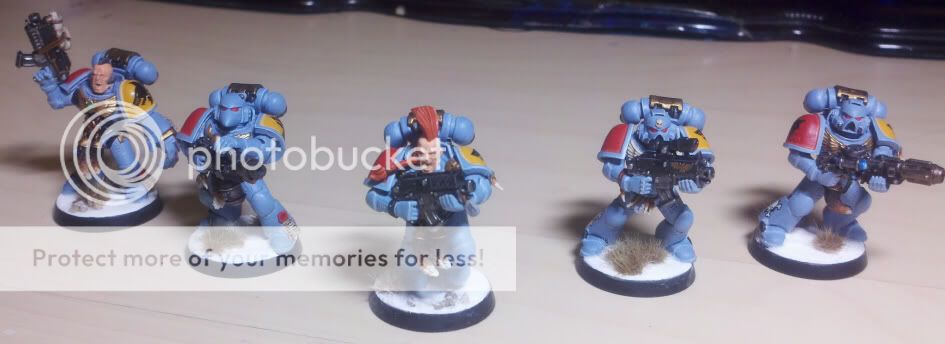 Just about done with the 5 Grey Hunters. Getting those FW weapons to fit was a pain. Anyway, just need to do some highlighting, the lense on the scope and the backpacks.