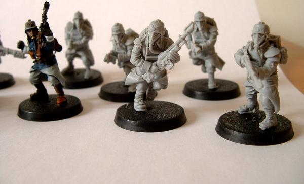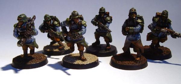 The regular Kriegsmen grunts will have grey greatcoats, while watchmasters, officers etc will have blue coats