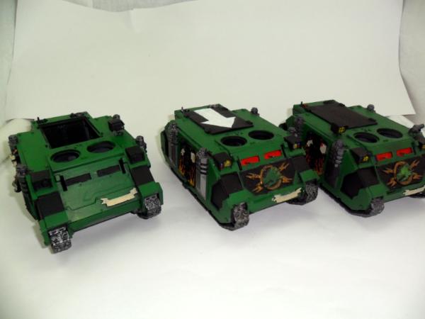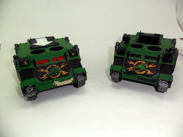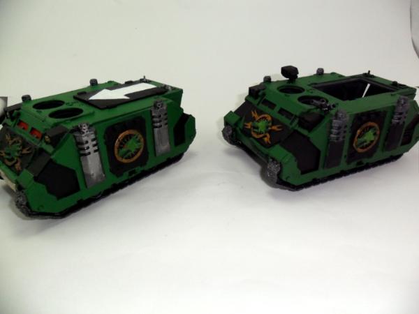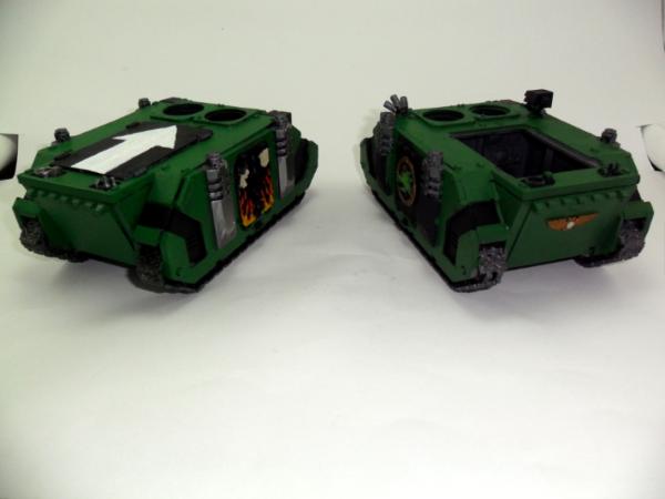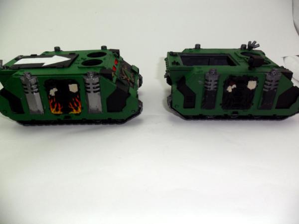 That's right! I started another rhino with FW stuff. I'm debating whether I should keep the exhaust metal colored or put some plastic sheet on it, bulk it up and paint it black. Hence the side by side pics. The first one has the flames done and I even did the windows before starting on the second rhino. I may even start a third rhino before painting a drop pod