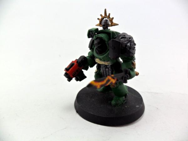 Next up is a chaplain wearing the jump pack with an added book and Salamander Icon on top. It really belongs to the Librarian in TDA armor but how would he know it was missing?