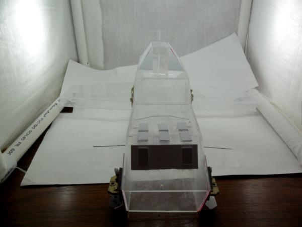 I've been slowly adding plasticard and bits from Max Mini to build upon the shape. Pretty much a 1mm card for basic panels and then a thinner platicard for strips/shapes and rivets.