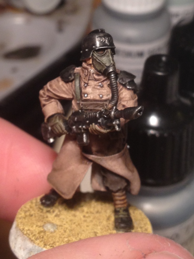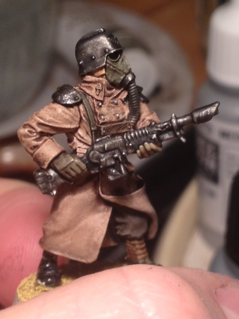 I've finally found some more time to paint again, and have been concentrating on some Krieg troopers to act as the faceless goons these Kommandos will be taking on. I've done a whole load of experiments painting ork skin only using washes too, will post up some when I have a chance, but it's turned out generally quite well. This guy hasn't had all the final details added to him yet, and was only a test for now, not sure where I'm gonna go with this yet.