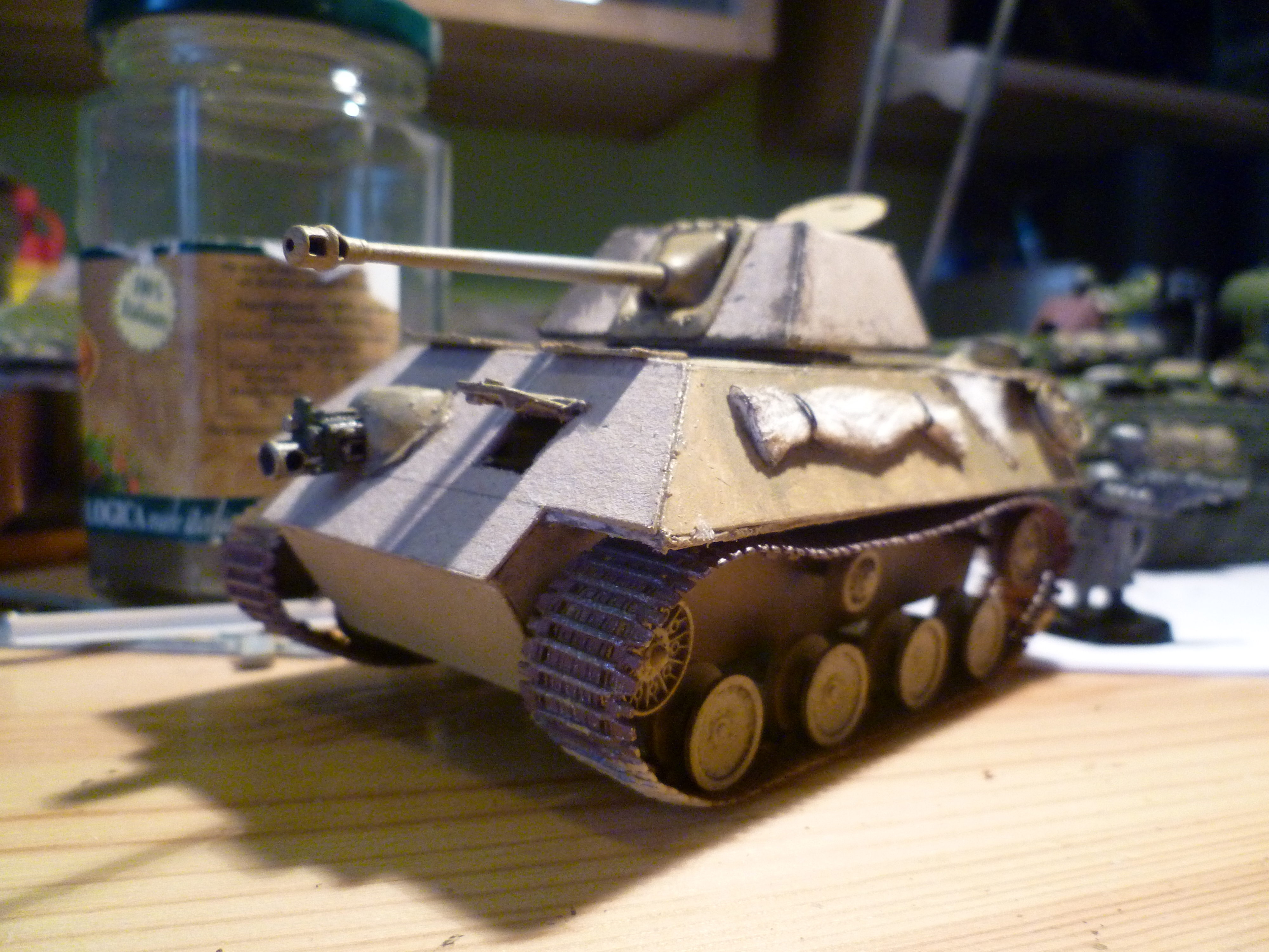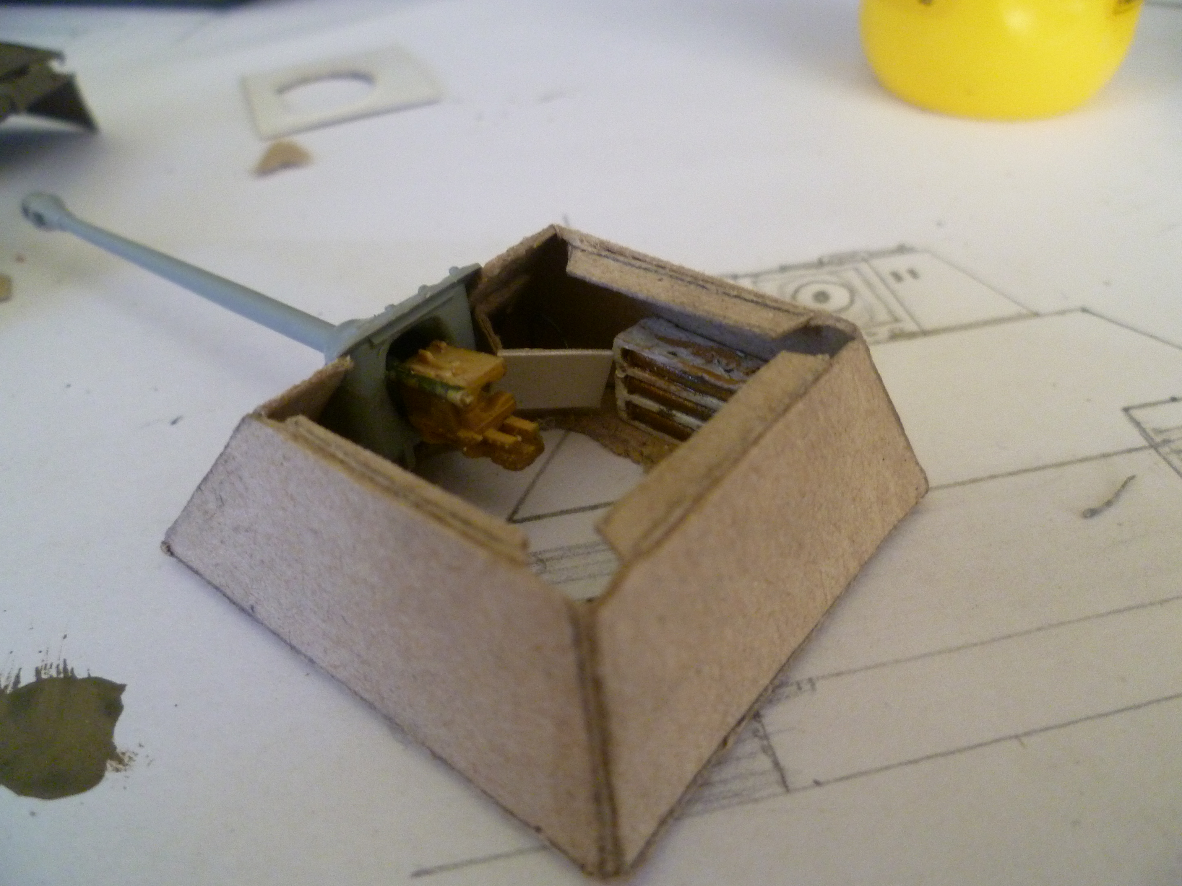 cool, so much detail...wow this will look very good when fully painted! how do you cover the creases that happend when folding cardboard? on the turret thse are rather obvious... i ask because i have this problem too with my tank... tho with mine i covered it up with boxy looking carbord even further...^^