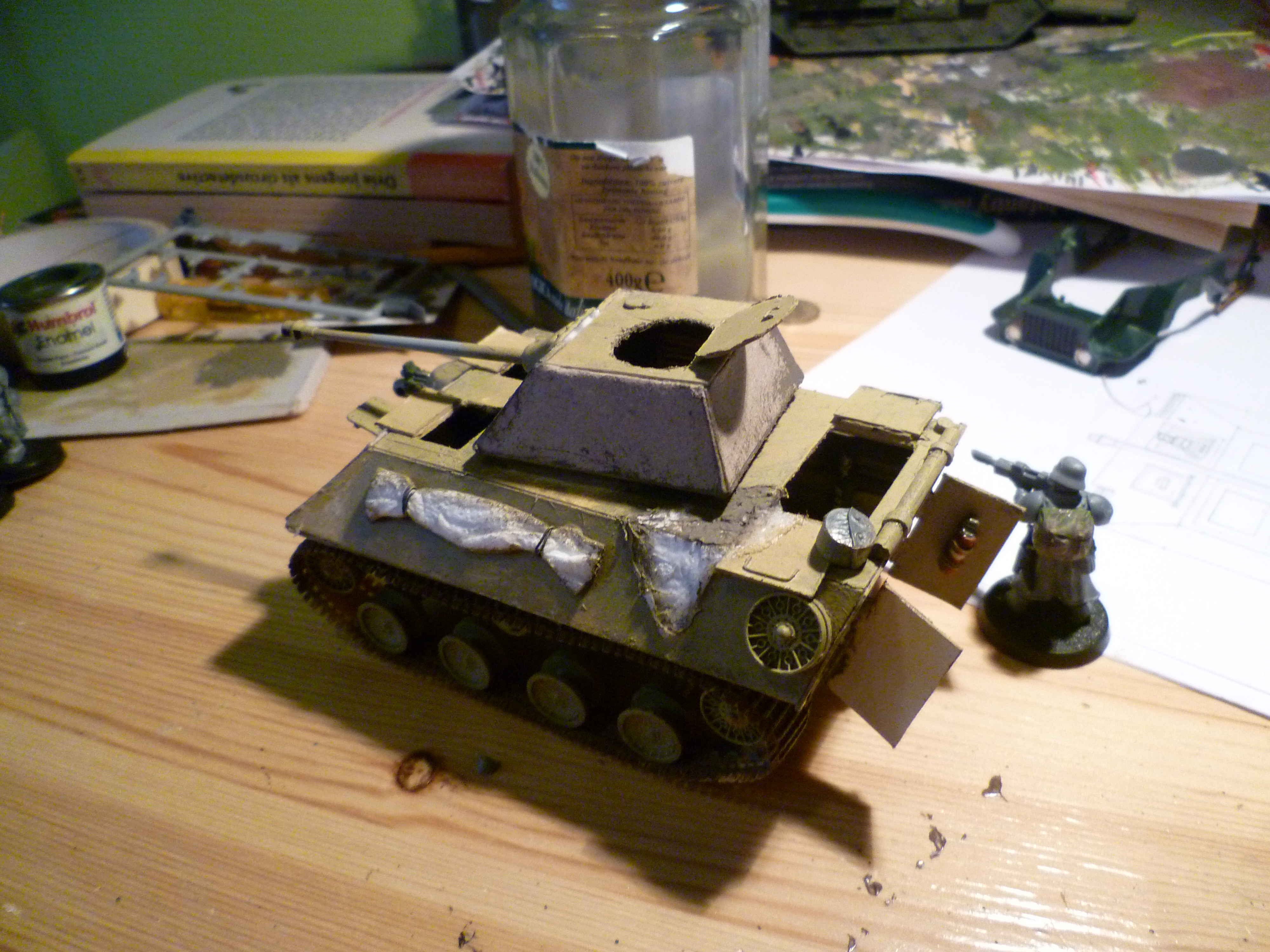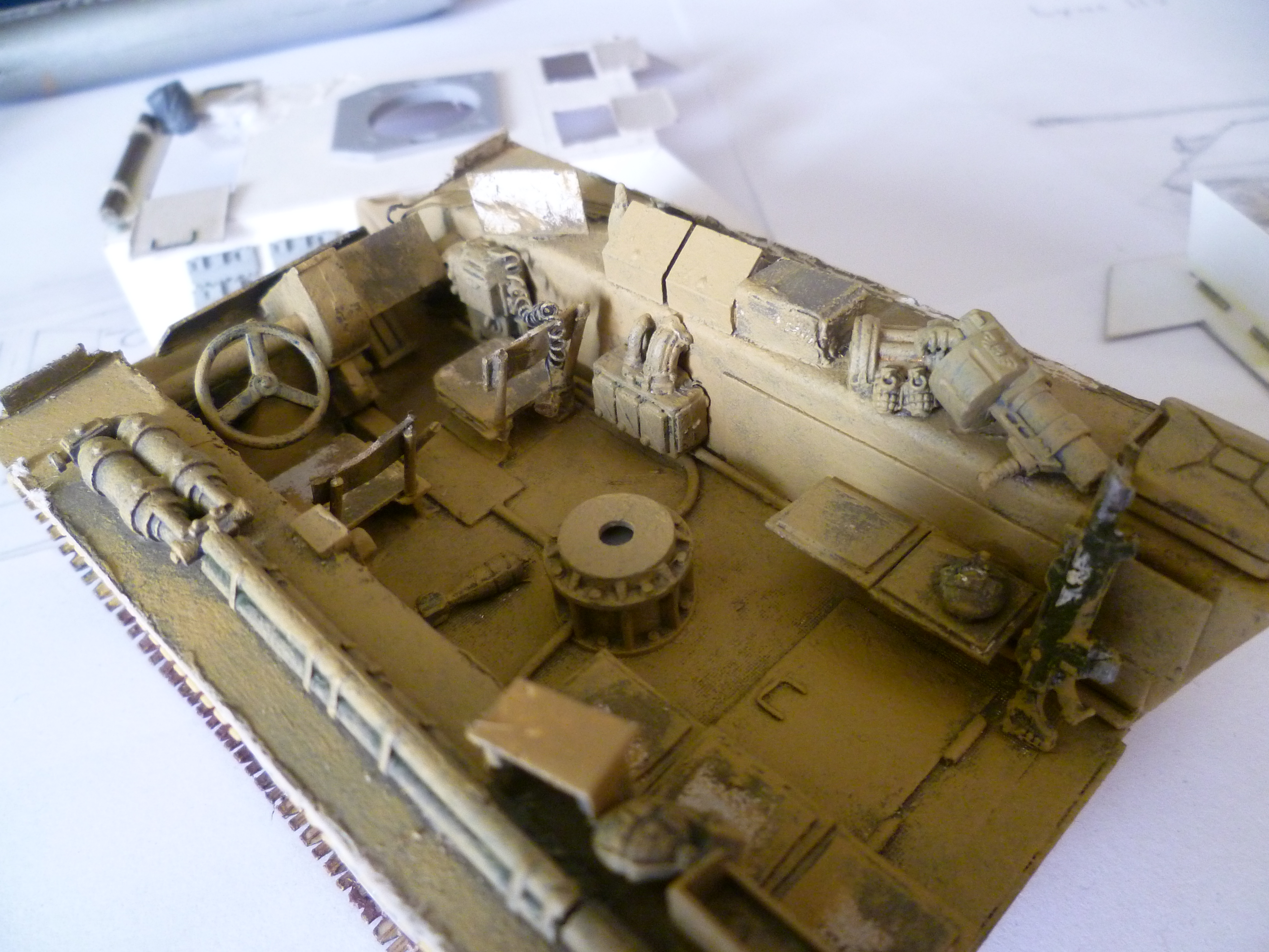 In the past few days I have finished the interior and basecoated it, I've also finished the upper hull, the turret and even a driver figure, so now I only need to add a few small details and paint the interior and then I can put the separate parts together. After which, painting can begin.