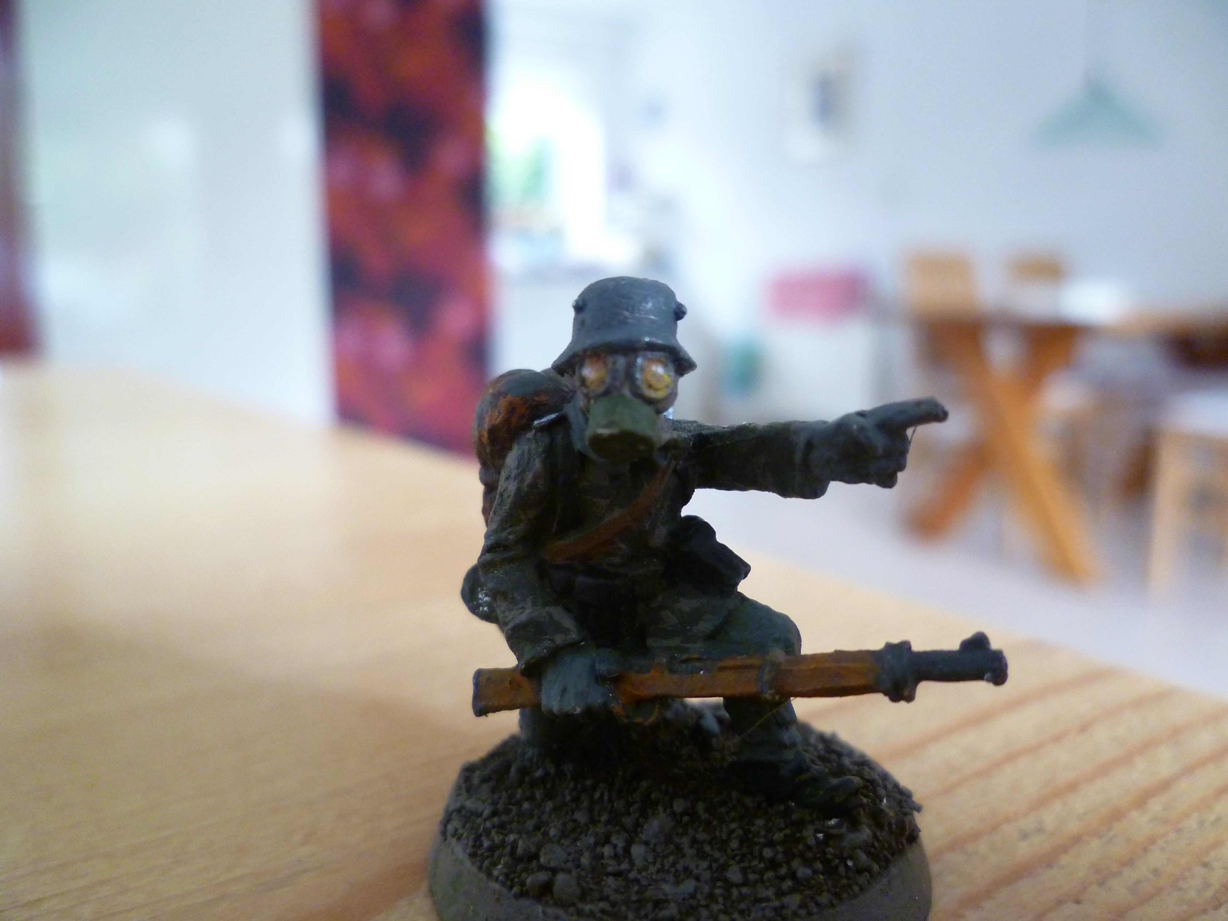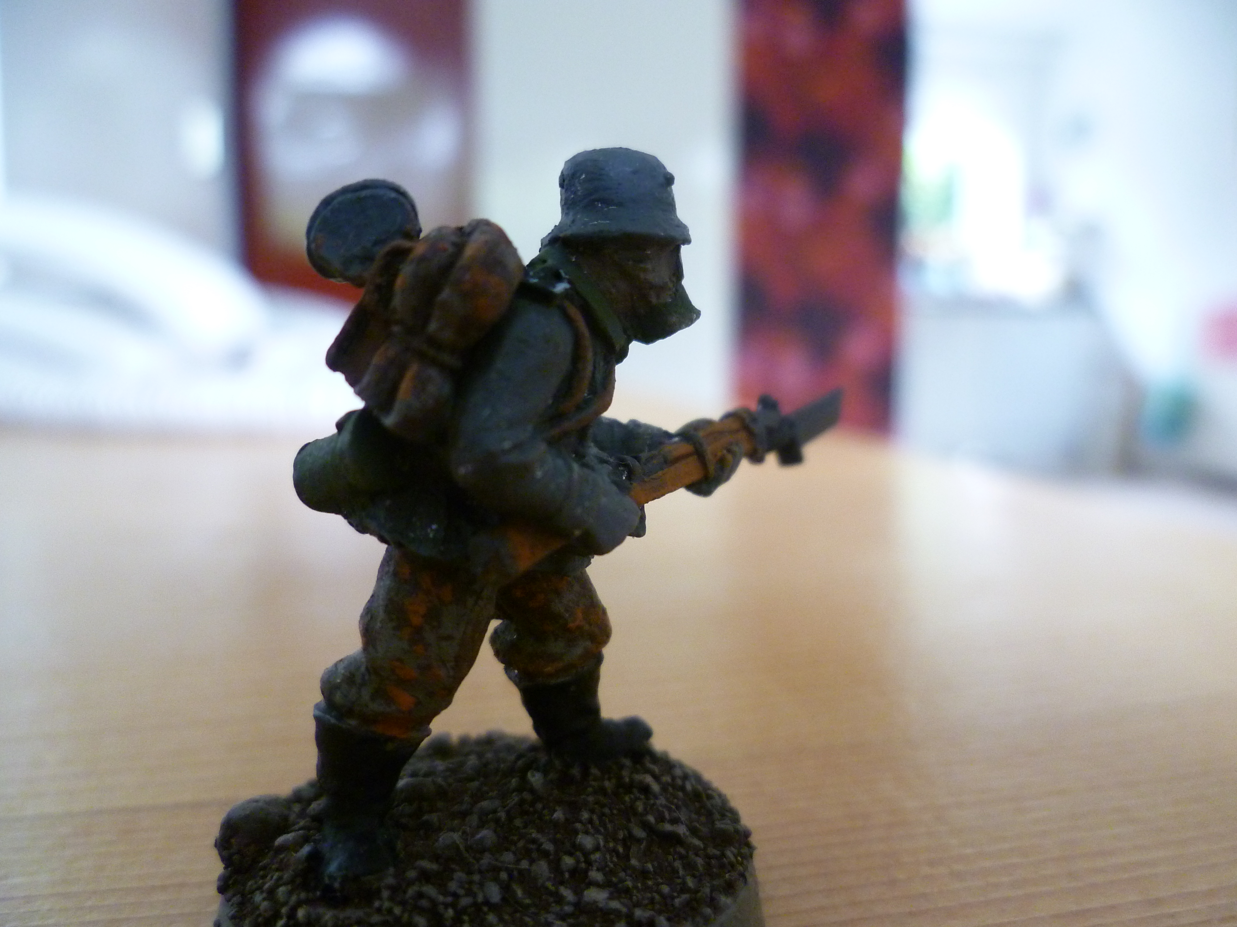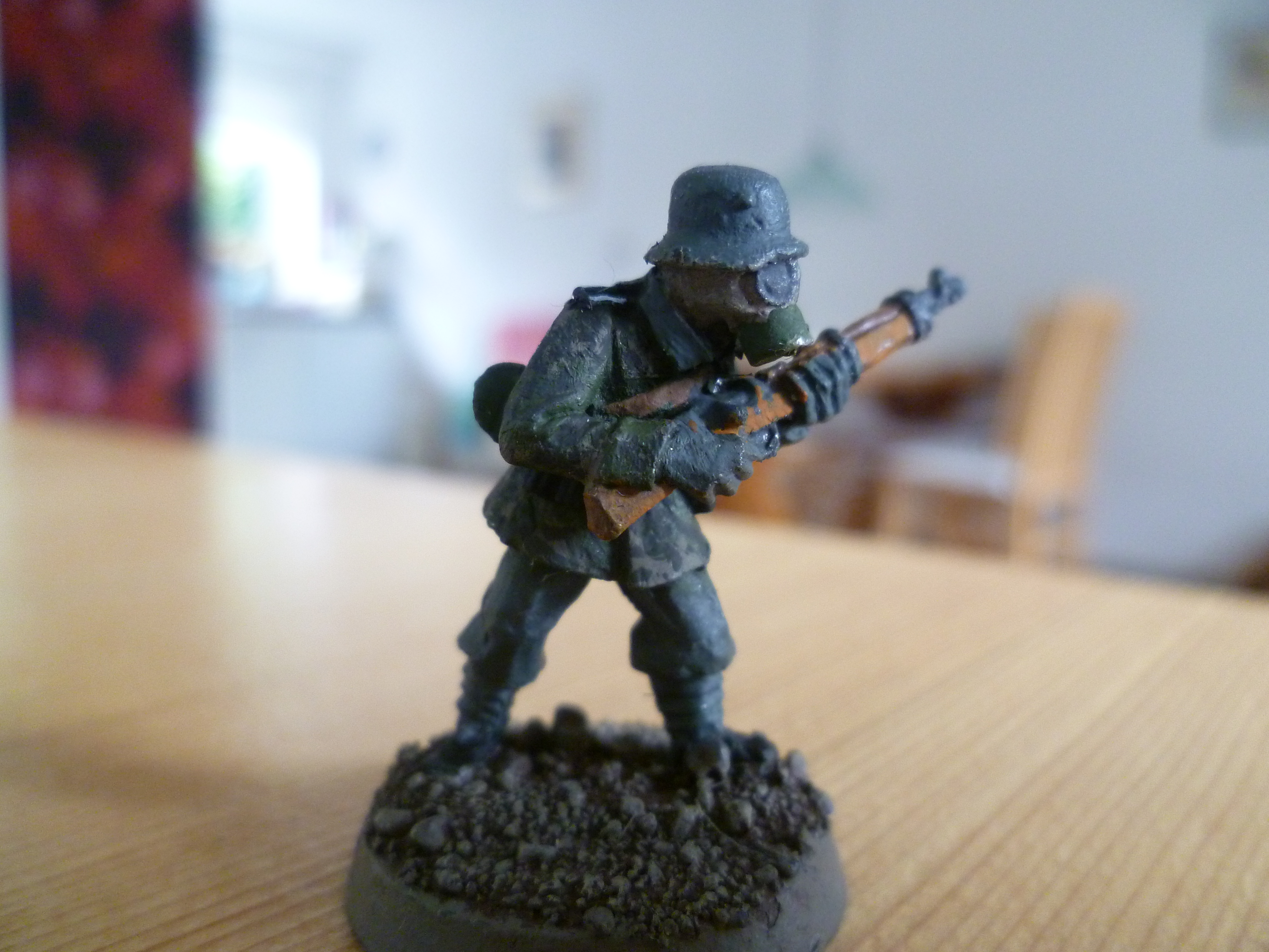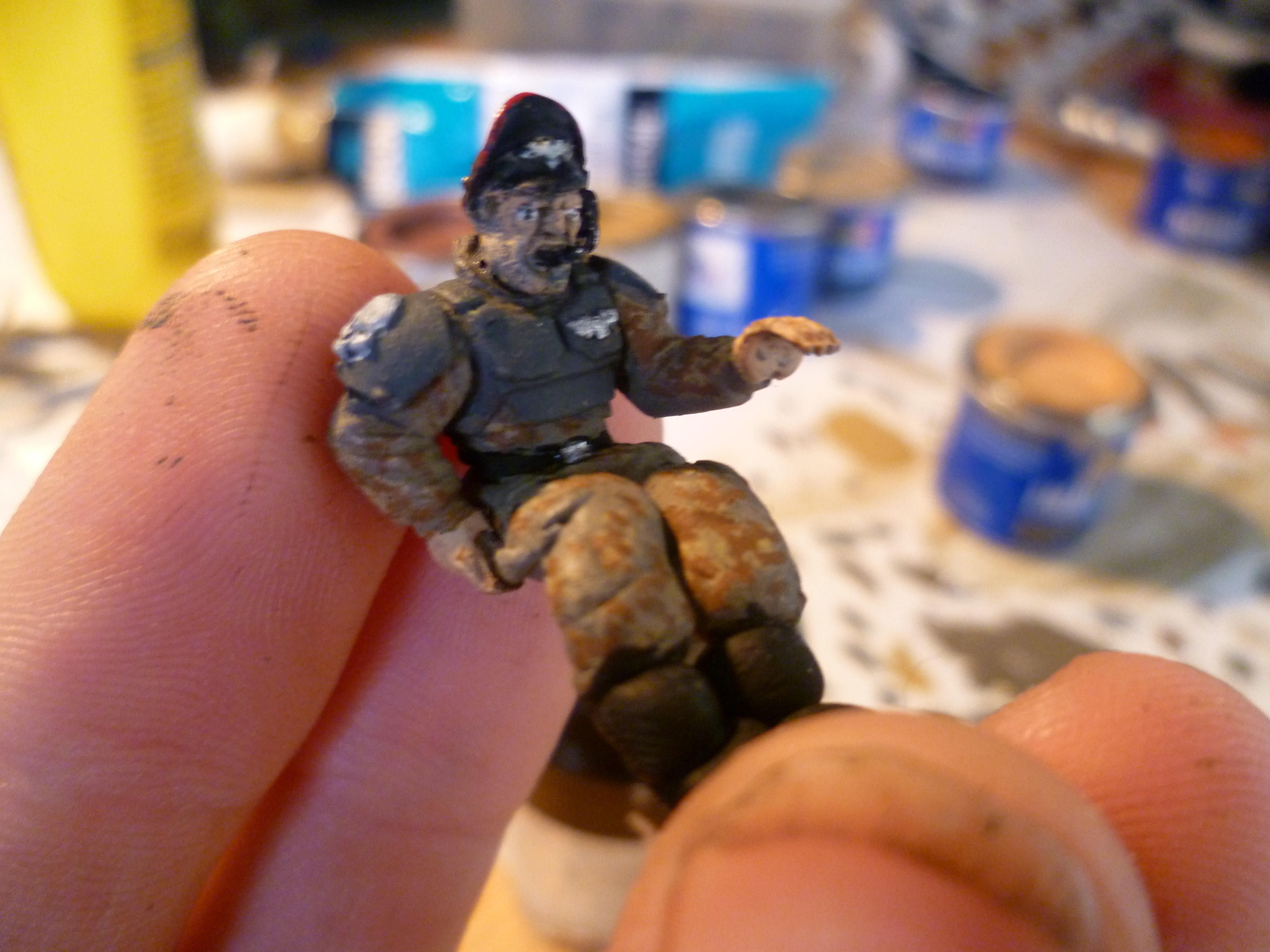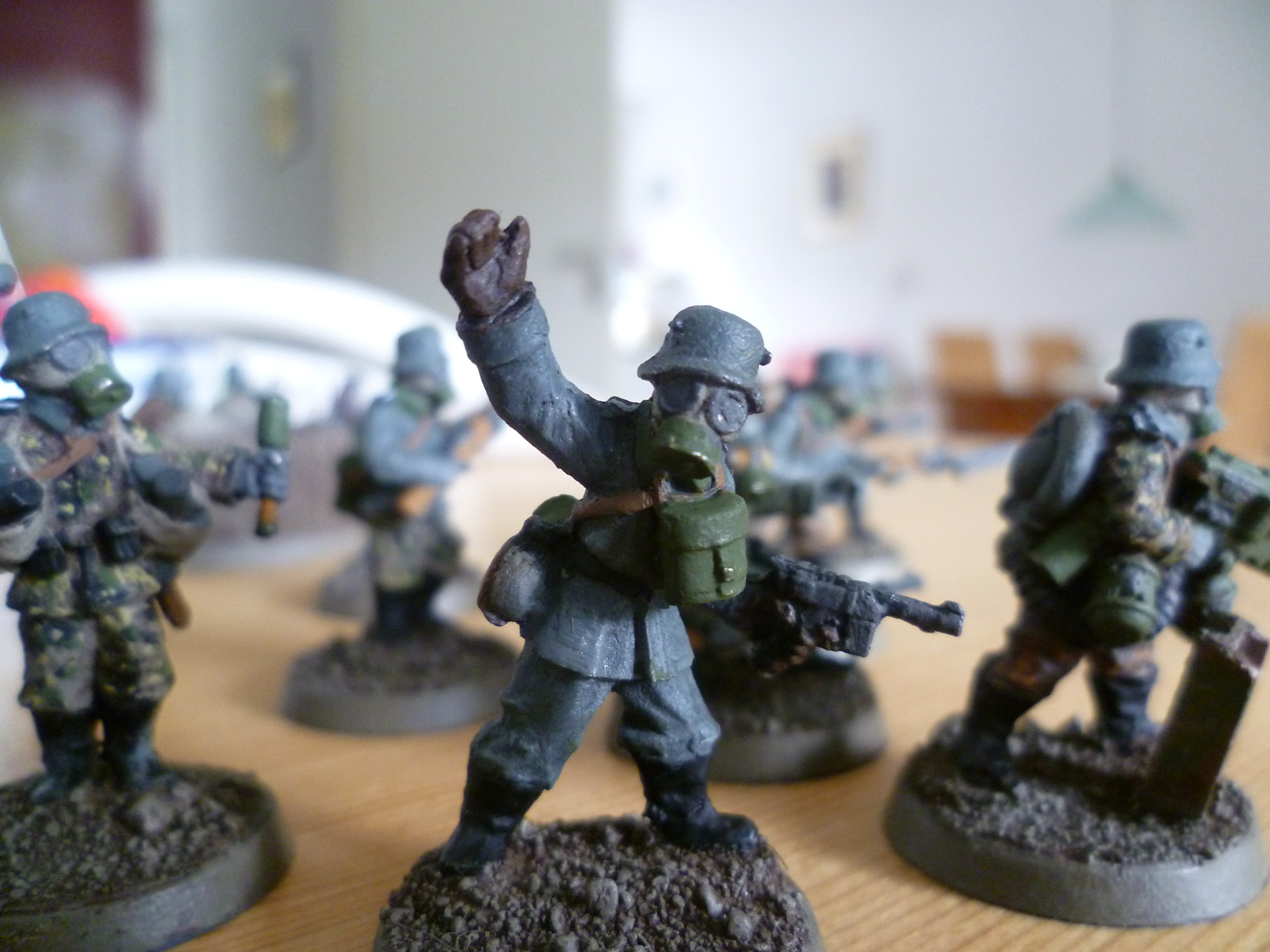 well i am in an imp arse situation here up my neck...your scheme looks really well done... all fighters look very crisp...and for my own decision i would let the uniform mix just stay that way... mixed all the way through like in the late days of WWII where everybody fought how they could a loosing battle in germany...but to tell you the truth... i choose to build a britsih victorian oriented army mainly because tho cool looking german late war soldiers may look (and even SS officers look mighty sharp in their uniforms!) i strongly destest a SS oriented army...but thats just family historiy related and doens´t keep me from admiring a well done job...i hope your fancy doesn´t go too deep into the schemes of the used paintjob and beyond...