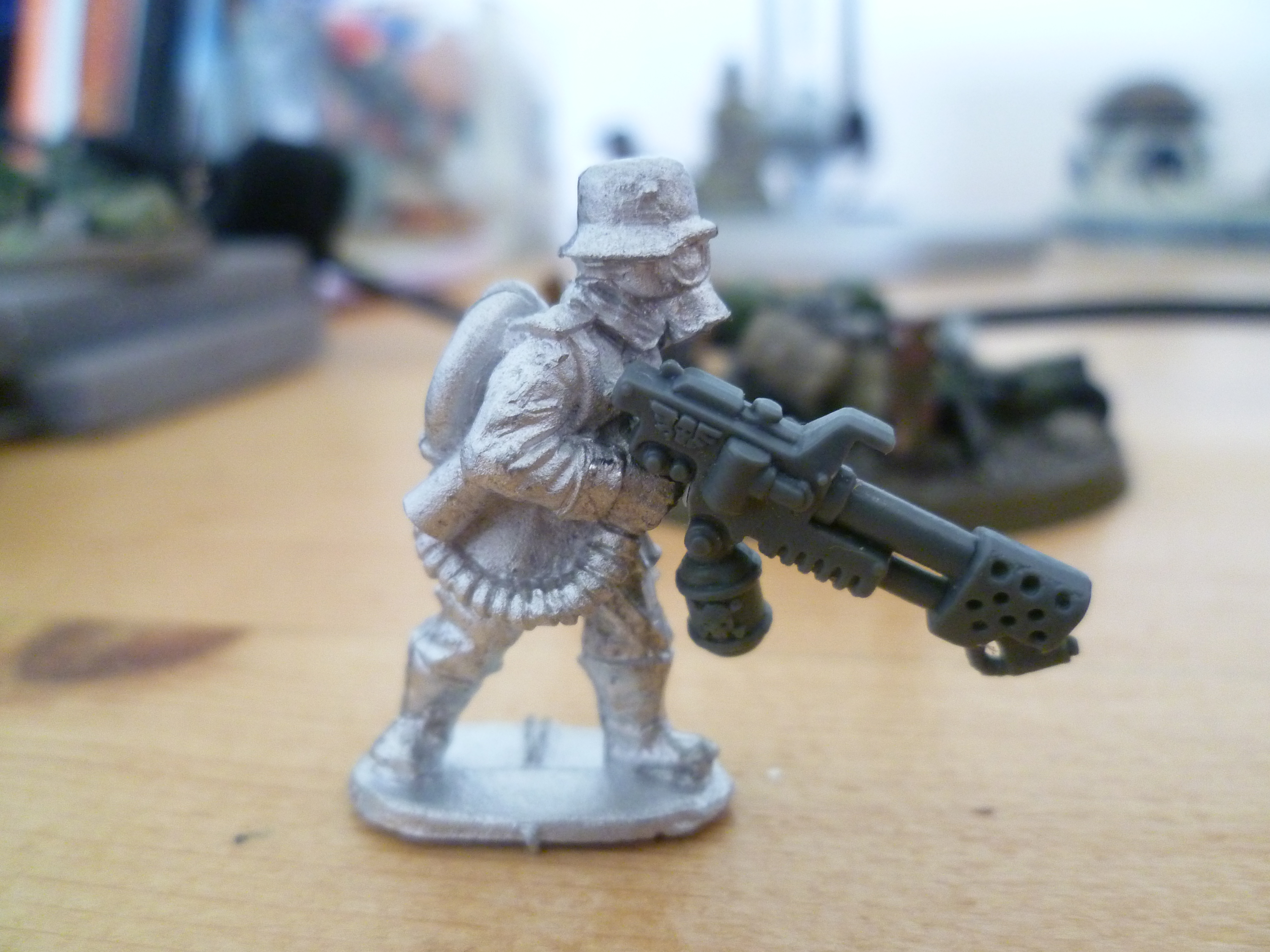 Today I made a little conversion on a metal flamer guy, nothing fancy here, just replaced the flamer with a catachan one