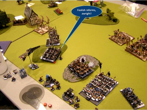 It's pretty funny, you've got to admit that the famous Dwarven firepower did little, as did the mighty magic of the Slann... all that was left was an awkward crunching together of units in the middle!