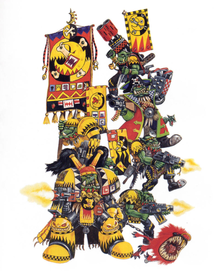 My next army will be a Bad moons Ork Warband, I love yellow on the table top. It will be quite insipid when I play the local Imperial Fist player, so might tone it back, with a dark blue and Yellow Combo.