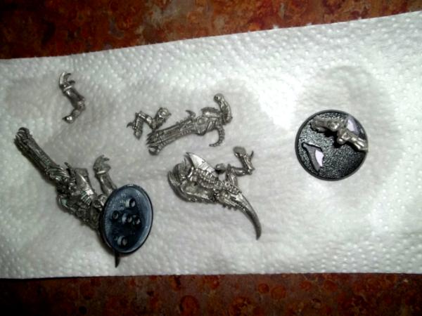 Next up is Hive Guard number 1. He had literally less then one minute of scrubbing. The paint just falls away. I didn't get all of it off the base, so I did have to go back and touch that up: