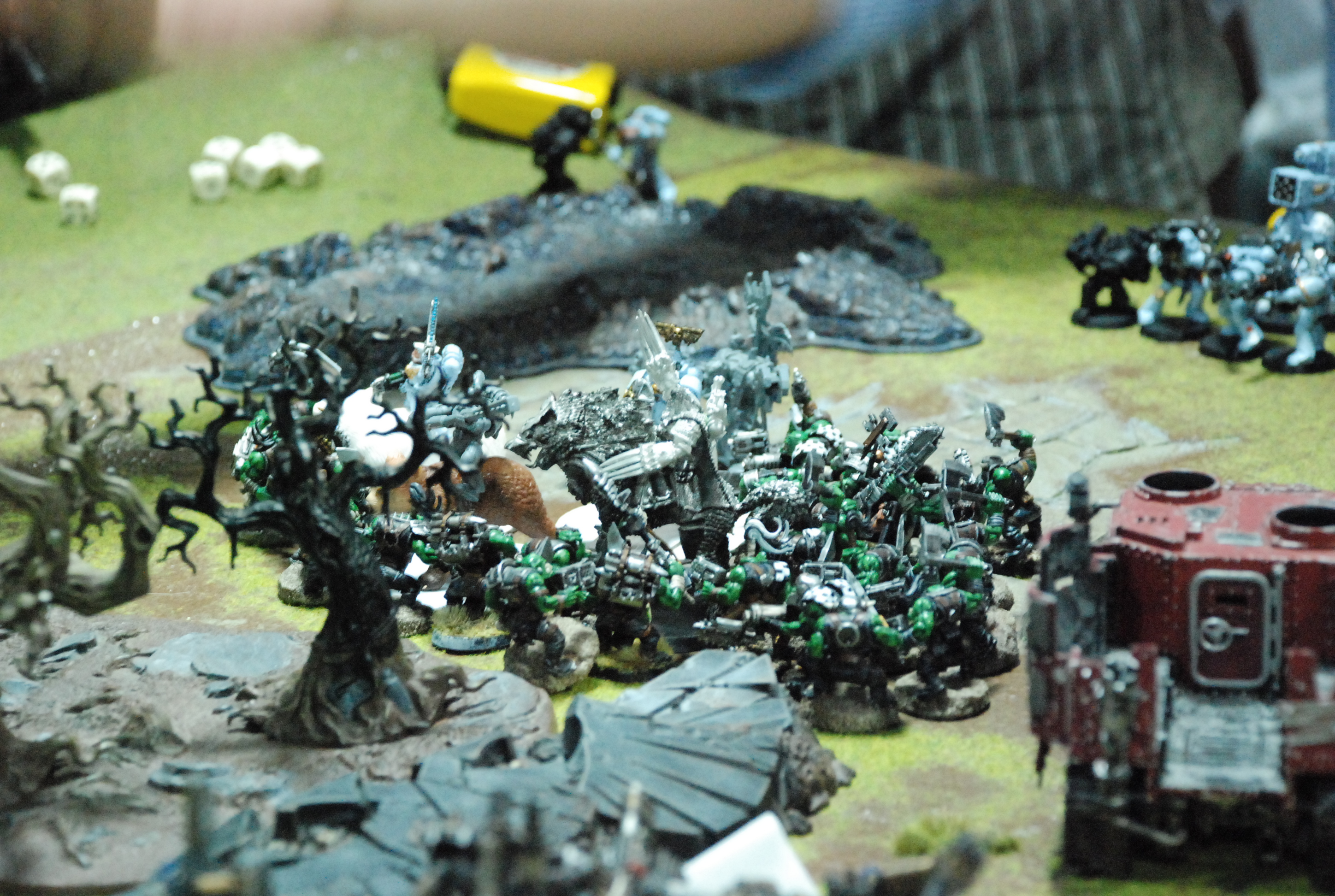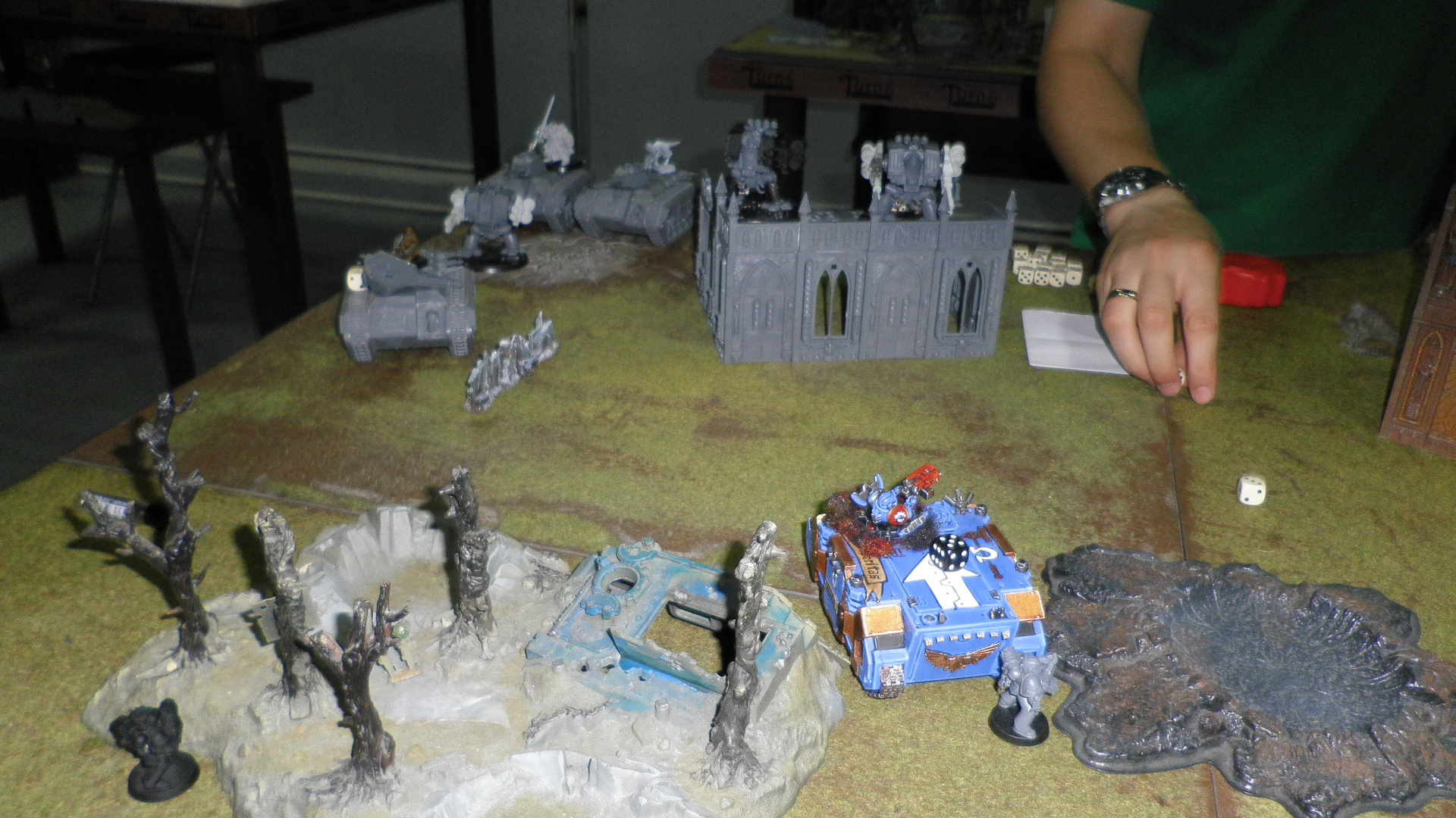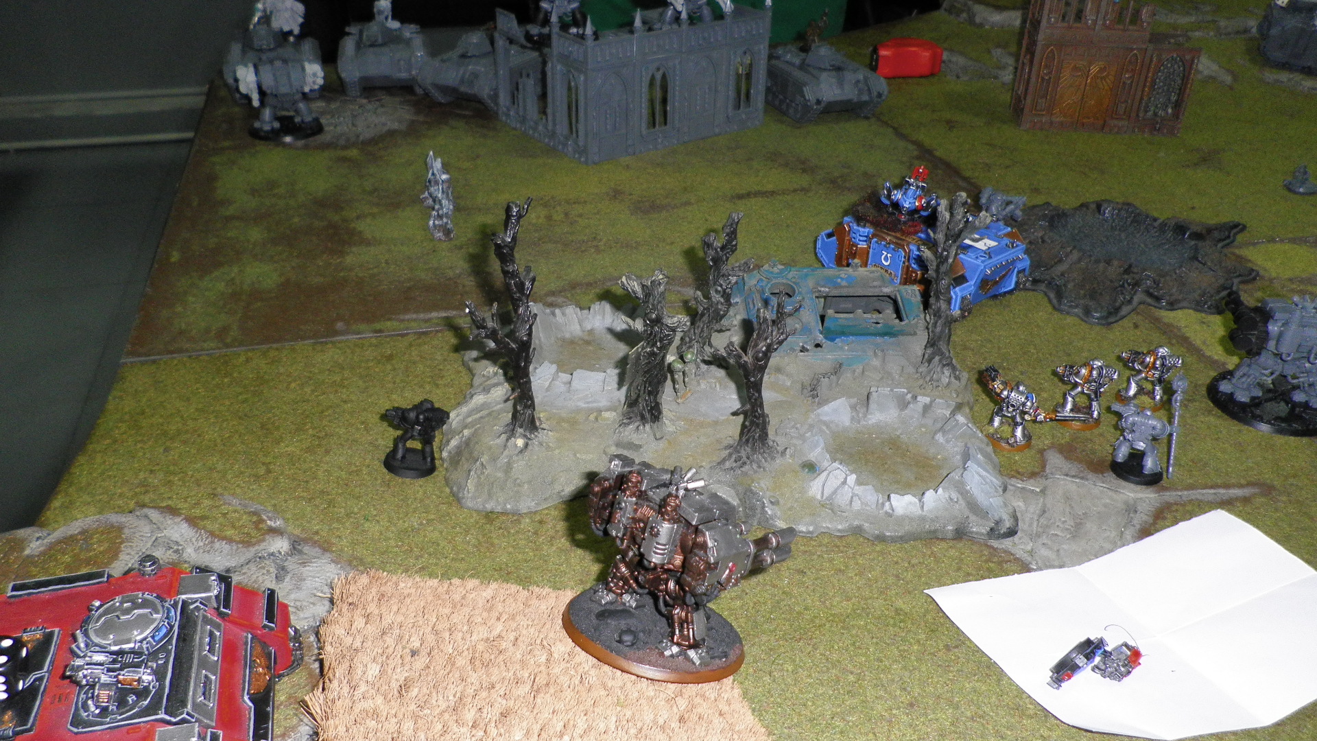 I gave up about 650 VPs (2 full purifier squads, 4 rhinos, half a purifier squad, half a strike squad, half a dread); Luke gave up around 950 VPs…3 razorbacks, 2 strike squads, purgation squad, 1 ven dread, half a ven dead, half of a few henchmen squads, and a few chimeras.