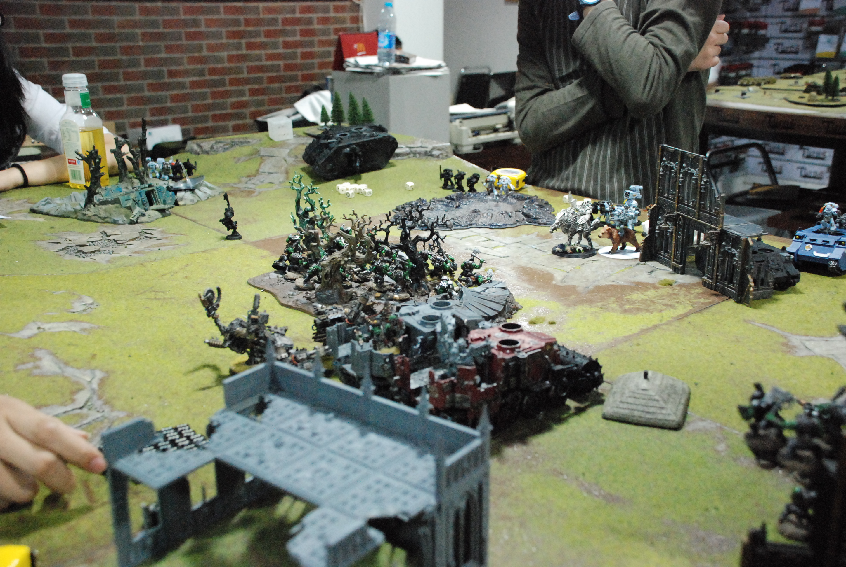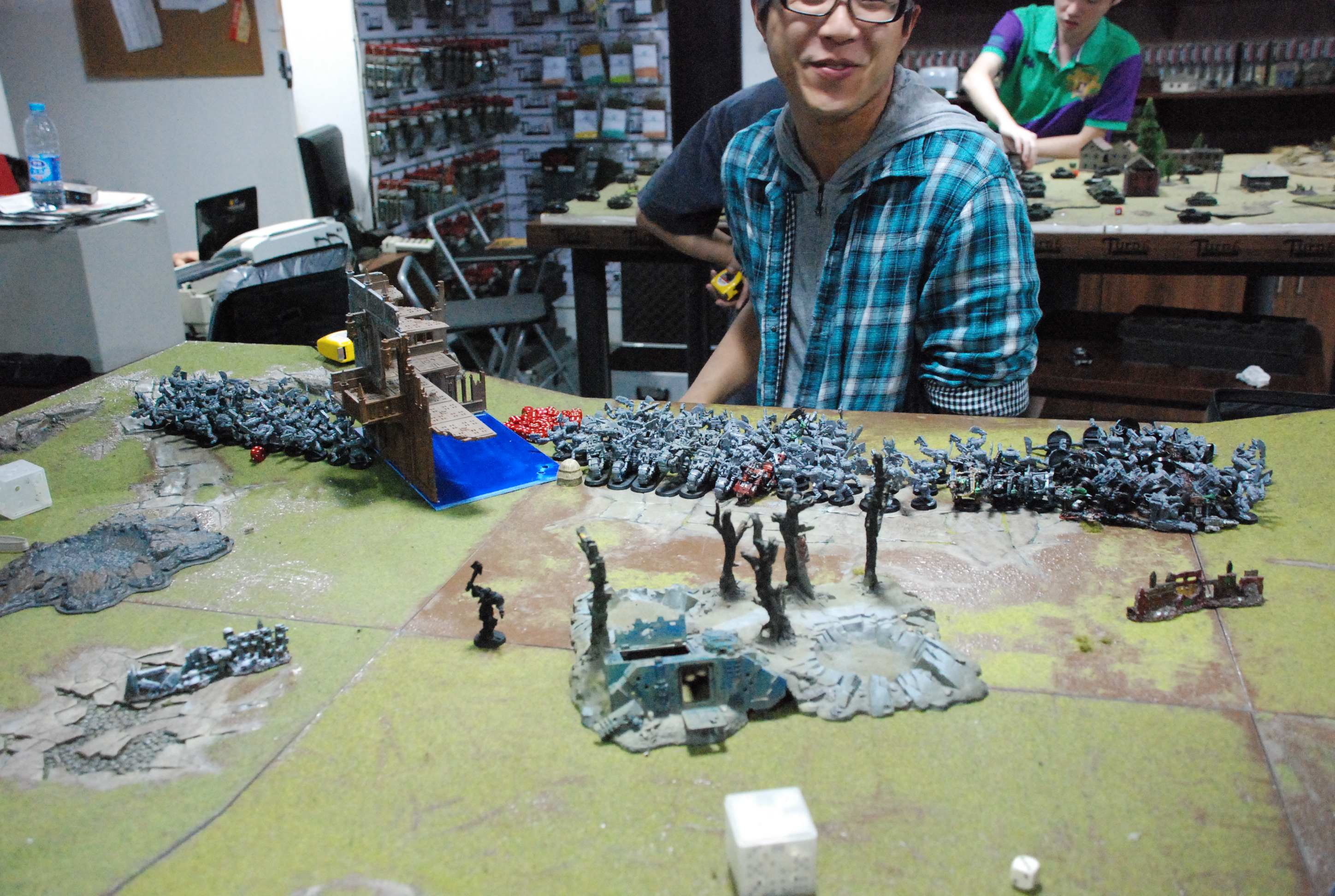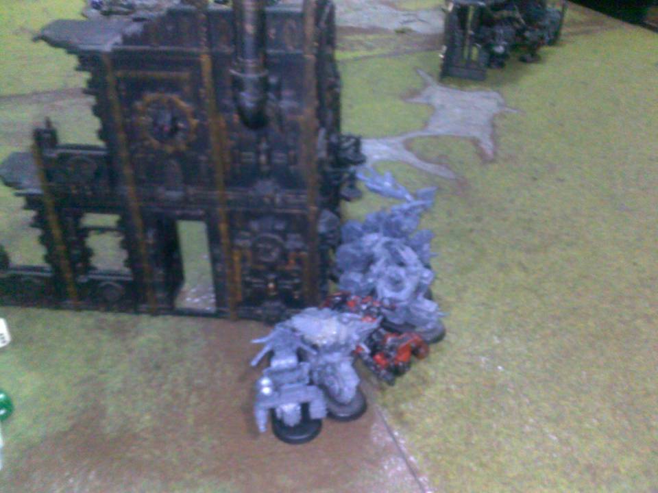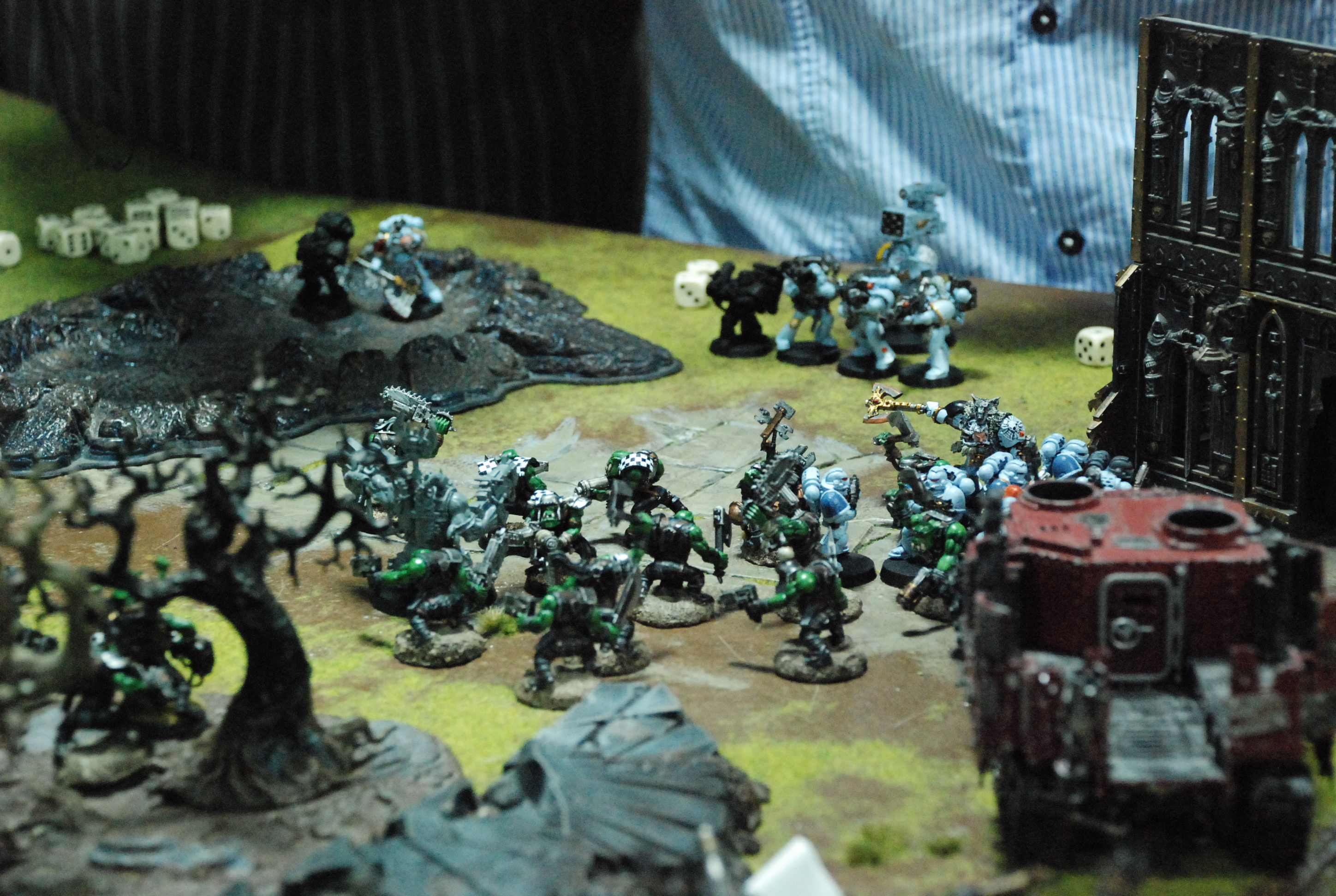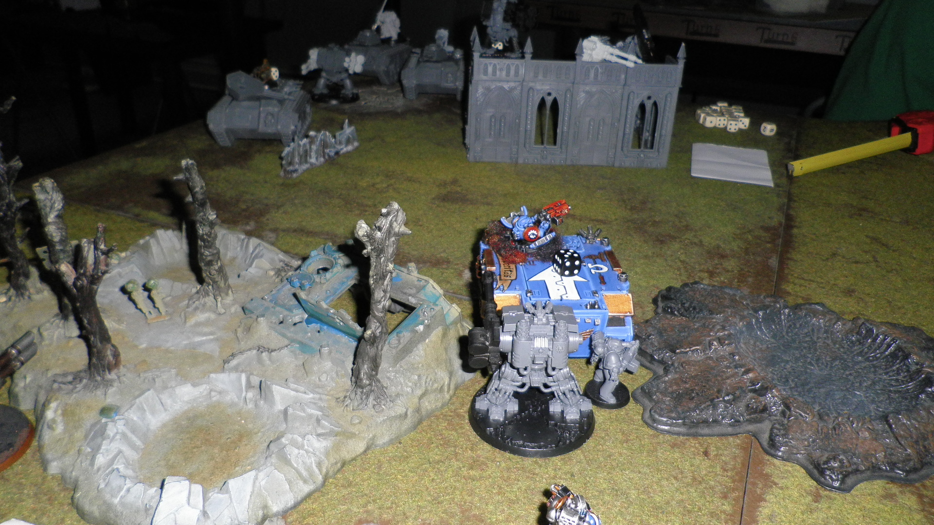 Thanks to Mark for the pics. I was waiting for the pics before I wrote anything up. The first game was pretty brutal. In the first 2 turns I thought I had the game in the bag since his Purifiers and rhinos were pretty much out of the game. However having 5 dreads over 3 made a huge difference and they swung the game quite decisively in his favour in the late stages. A really tight game.