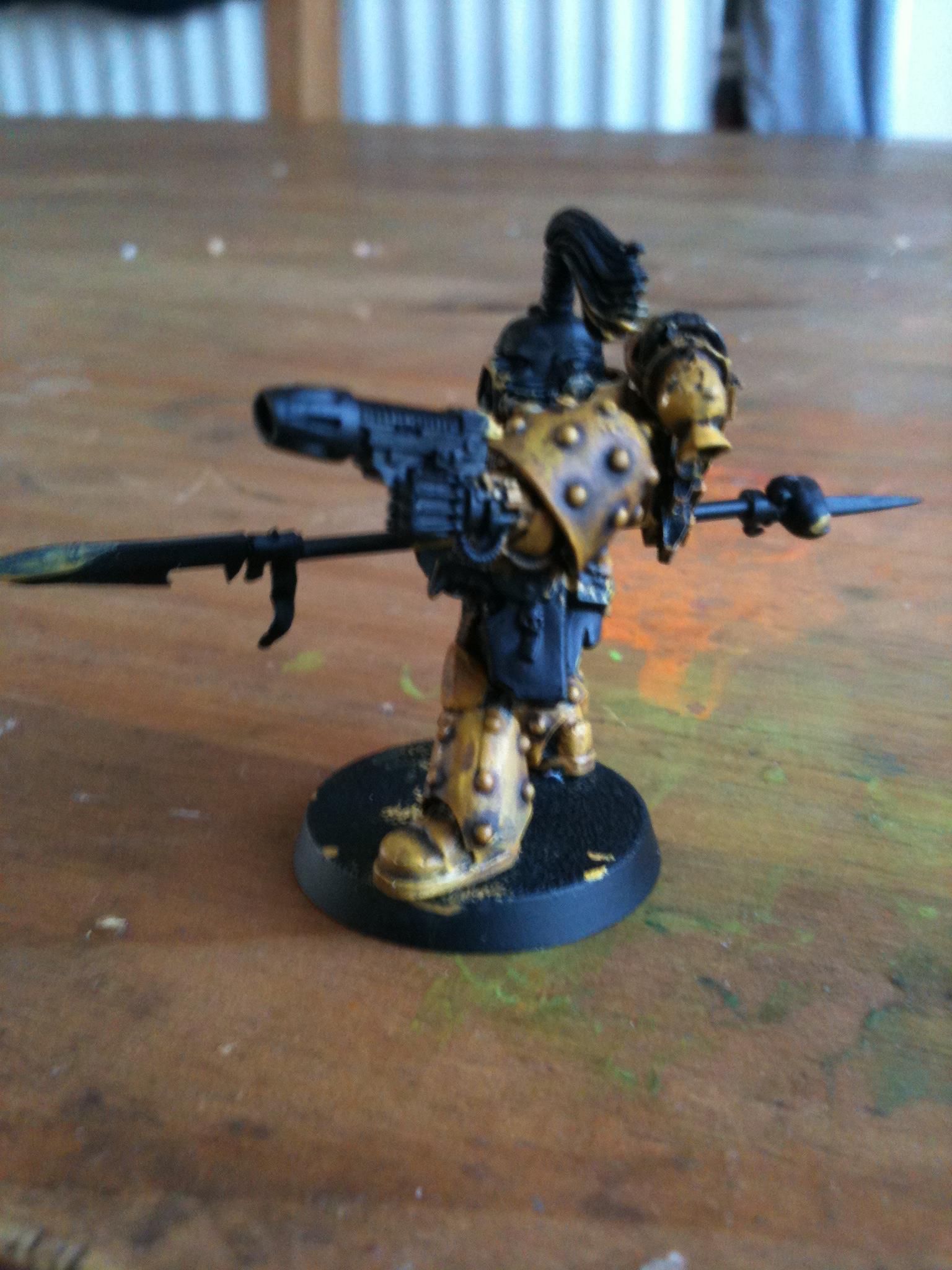 That said, the rest of the mini looks GREAT. Really looks like a Veteran/Sergeant and a battle grizzled one at that. Except for possibly the Contemptor, that's my favourite model of yours, he goes really well with the rest of the models and looks like a real battle-hardened, century-old Space Marine should. Laaavley.