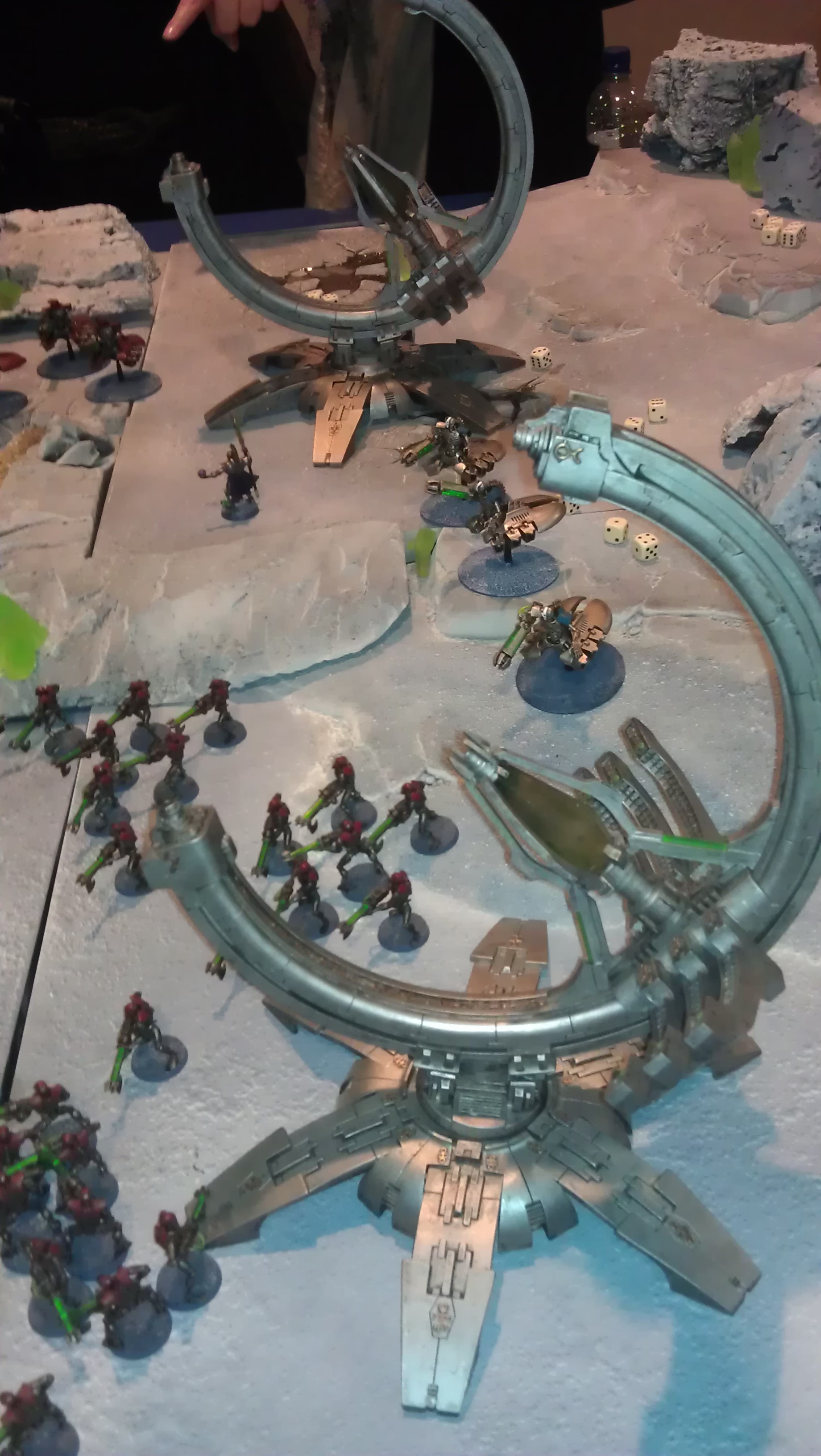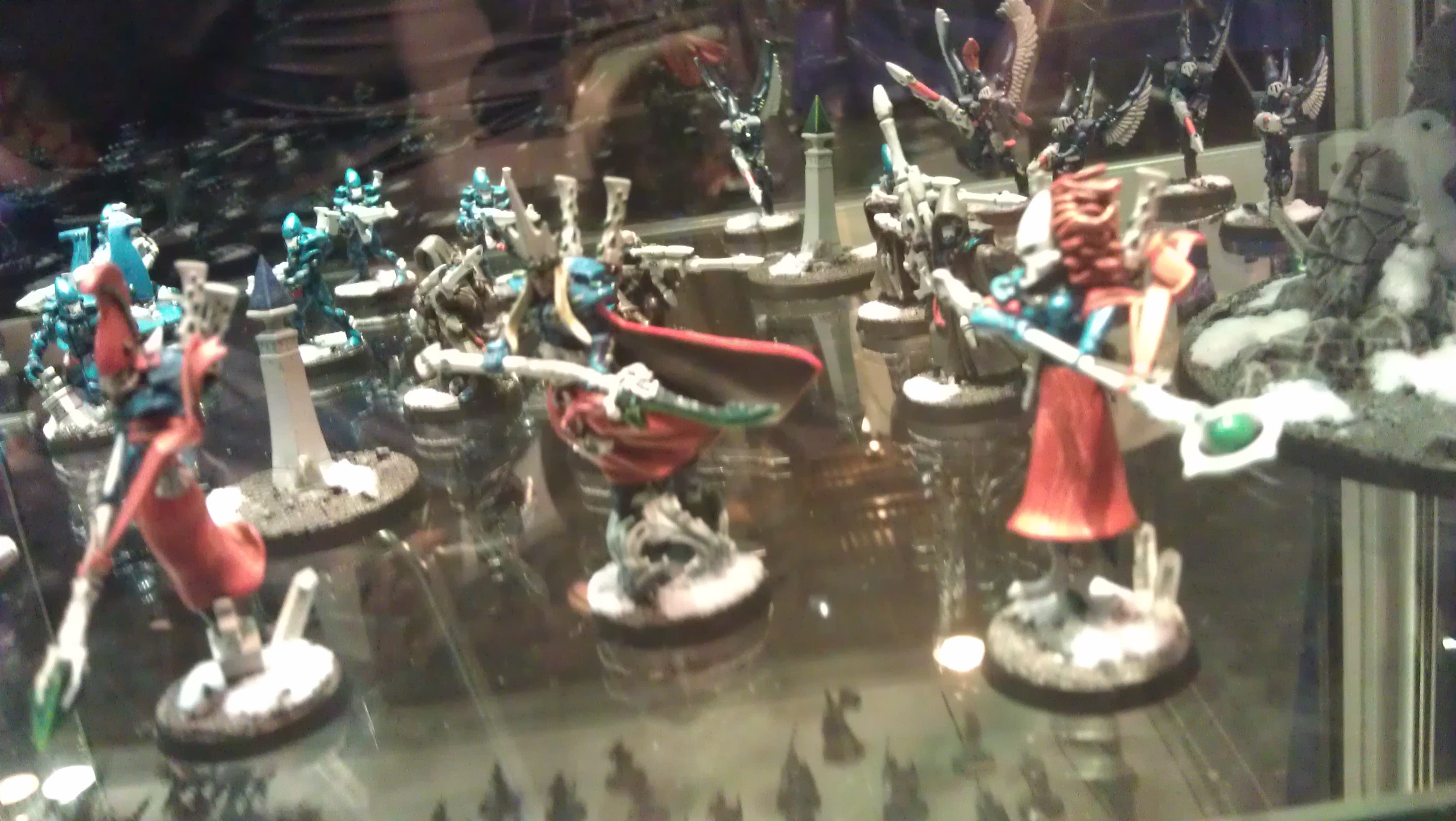 DE (wave 1, wave 1.5 mini release, wave 2, followed by fillers etc). One interesting point was as soon as you could finish saying "Nec..." the staff shut up like a threatened murder witness. Could this mean that something is nearing fruition? Pure speculation on my part, but there was a MASSIVE lack of necron items aside from those brought by the staffs gaming tables, that would say to me that they're getting ready for an announcement. I quizzed one of the 'eavy metal guys on why the 'cron 'dex was no longer on the site and was given the "we're working on many..." lines (again), I think you 'cron players will be happy very soon but have no facts to back this up, just my gut feeling.