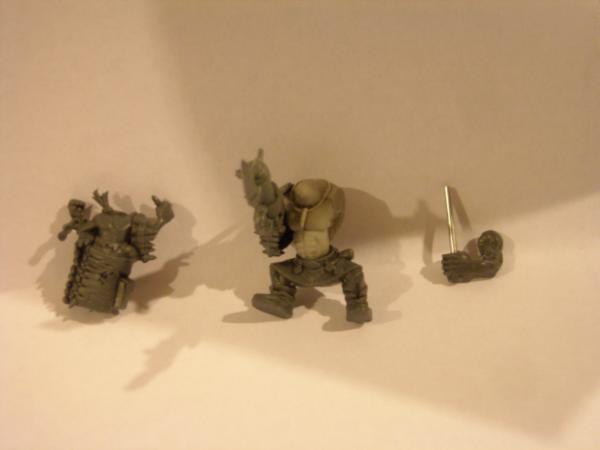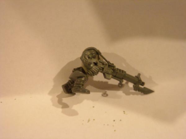 Well this thread has been a bit quiet. Time to fix that! I have finished my Komando. He has been sitting on my desk for months now just waiting to be painted. I have been too lazy do so before now. He was just one of these things I just had to get painted. I managed to convince myself to paint him by trying out a few new and different techniques. First off I primed him white instead of my usual black which I never do on any of my armies any more and have never done so with Orks, I also tried painting a different Ork skin tone differing from my normal one (I like this new one better) and finally I found a new way to make realistic looking gore (by far the most awesome thing I discovered while painting him). The gore is red gore mixed with PVA, Gloss Varnish and some fine modelling sand. I think it looks awesome. Enough of me waffling on. Here he is. Hope you all like him! Time to Write some fluff. I'm thinking his name should be 'Nobwort Snikgit'.