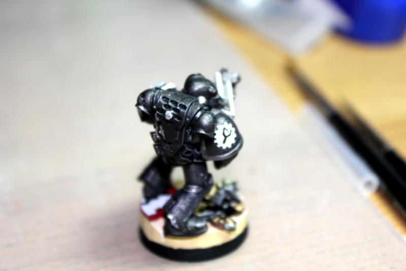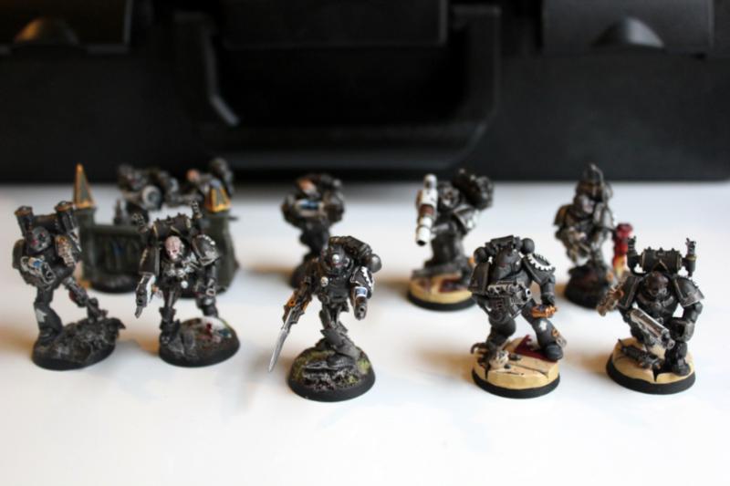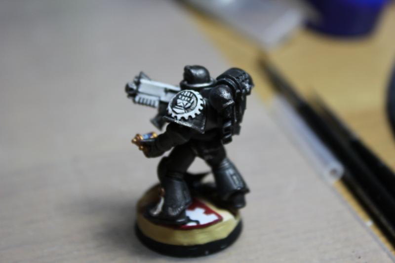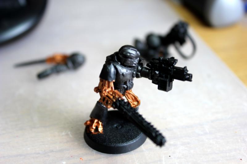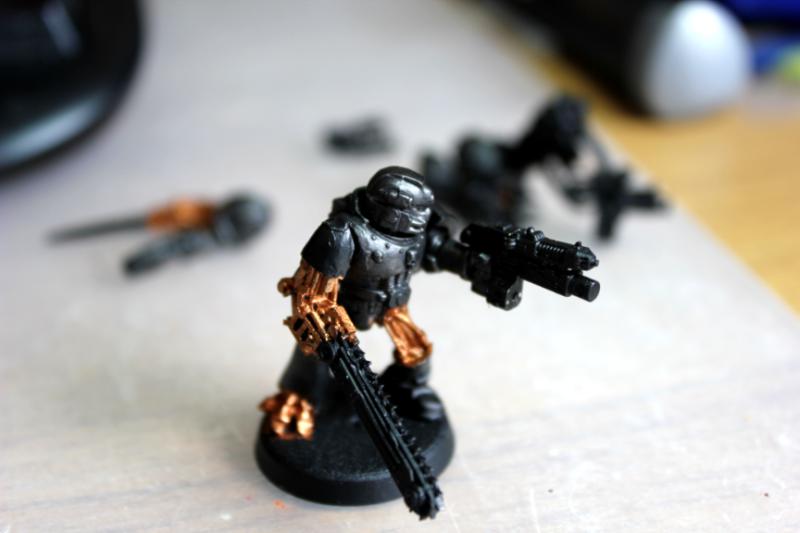 The thing that was holding me back was that I wasn't looking forward to the mass customisation that I'd agreed with myself to do, however I finally completed it and have basecoated all the marines in black. (This update is a little late too as I've started work on painting the men, that will come at a later date though)