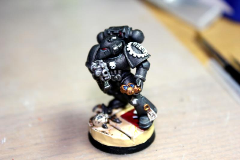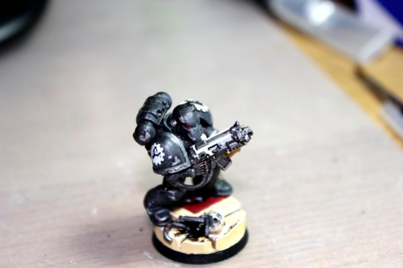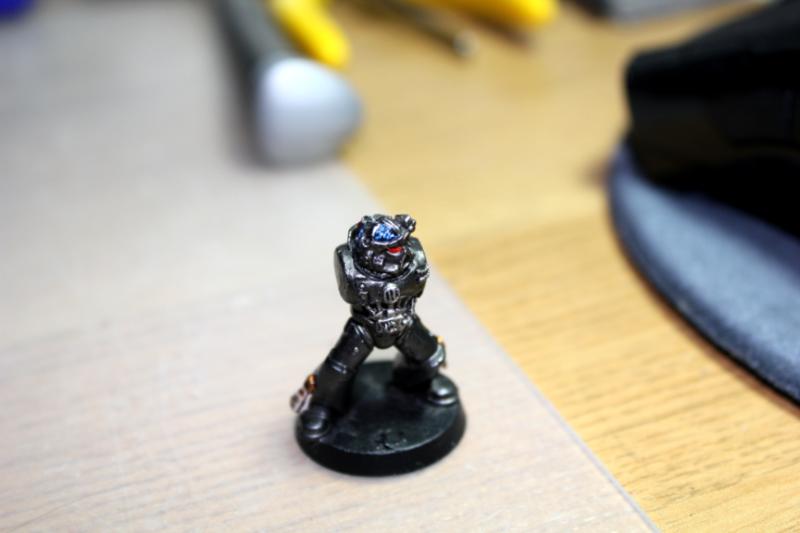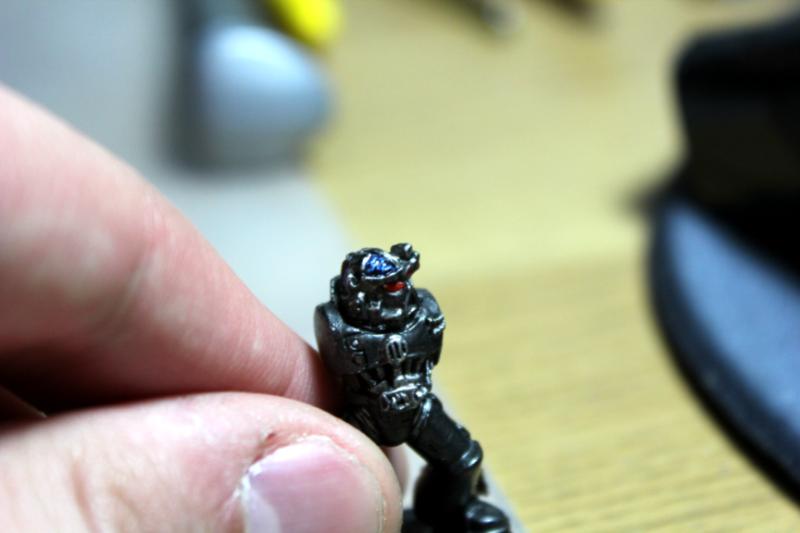 Second the top of my heavy weapons guys head, tried to do some kind of lightning playing over his metallic brain, little bit small for the details but it looks ok.